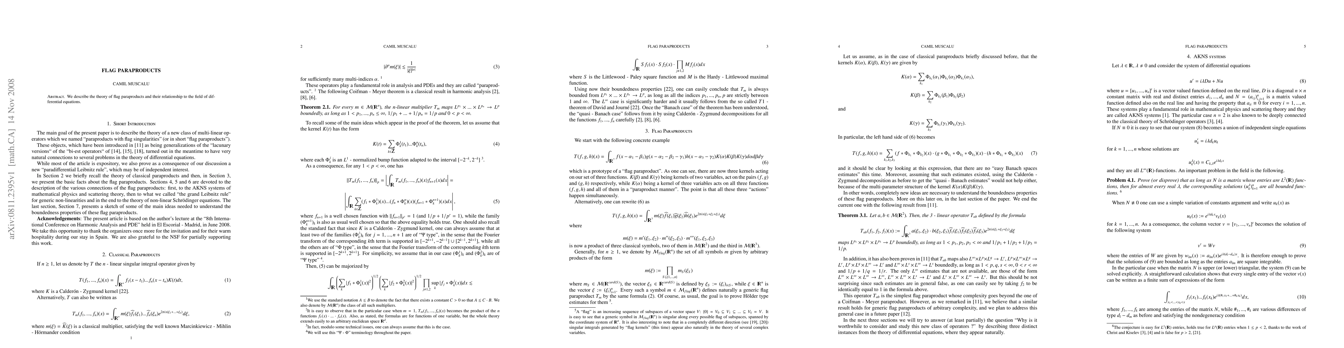 We describe the theory of "flag paraproducts" and their relationship with the field of differential equations.