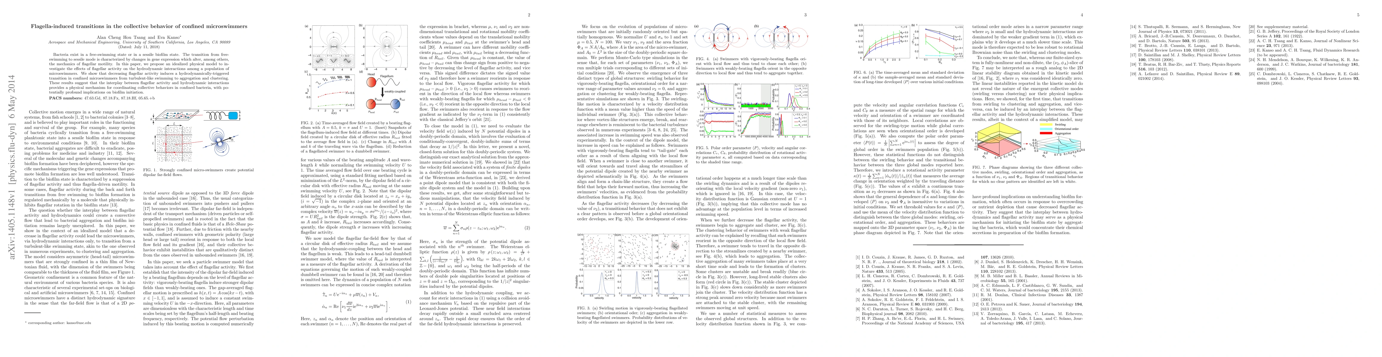This paper proposes a physical model to explore how flagellar motility influences collective behavior in confined microswimmers, demonstrating that reduced flagellar activity leads to a transition from turbulent swimming to aggregation and clustering, suggesting a mechanism for biofilm initiation.