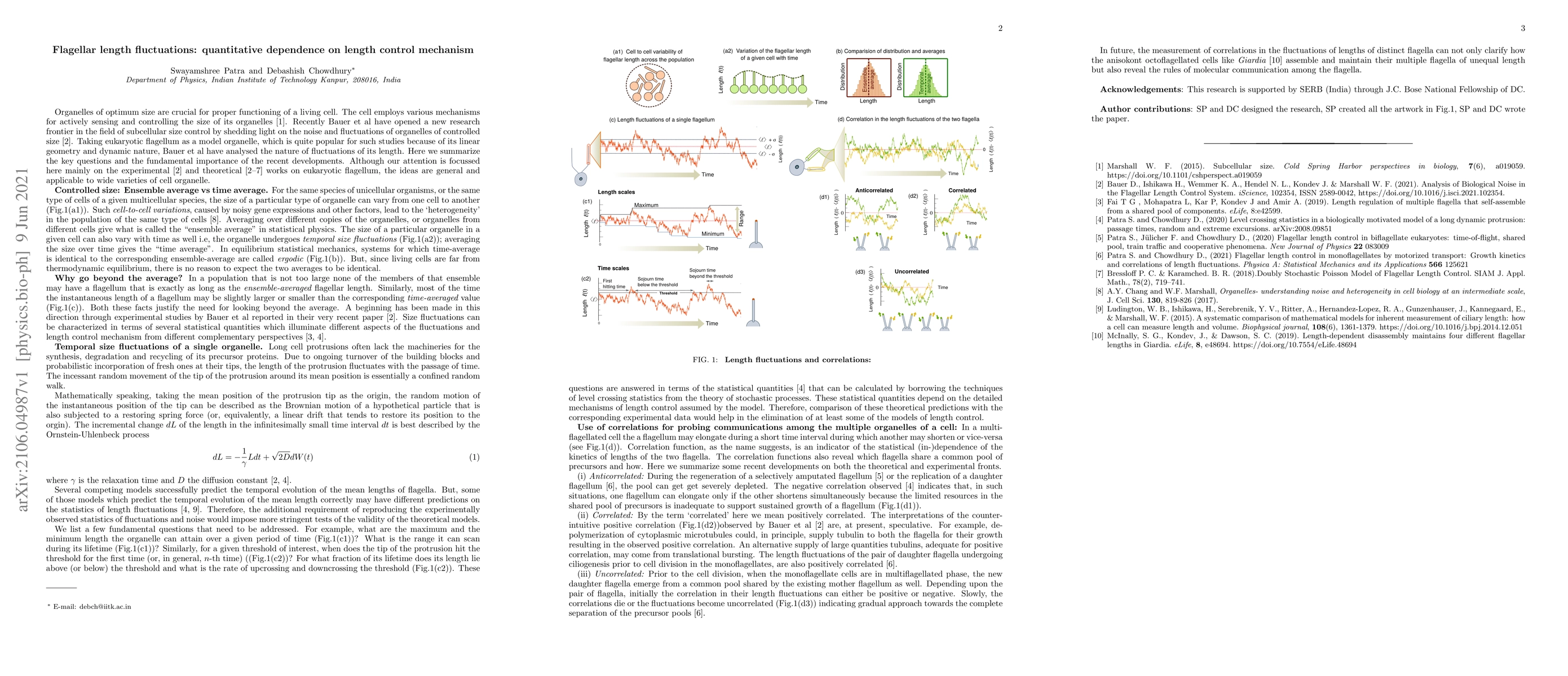Organelles of optimum size are crucial for proper functioning of a living cell. The cell employs various mechanisms for actively sensing and controlling the size of its organelles. Recently Bauer et al have opened a new research frontier in the field of subcellular size control by shedding light on the noise and fluctuations of organelles of controlled size. Taking eukaryotic flagellum as a model organelle, which is quite popular for such studies because of its linear geometry and dynamic nature, Bauer et al have analysed the nature of fluctuations of its length. Here we summarize the key questions and the fundamental importance of the recent developments. Although our attention is focussed here mainly on the experimental and theoretical works on eukaryotic flagellum, the ideas are general and applicable to wide varieties of cell organelle.