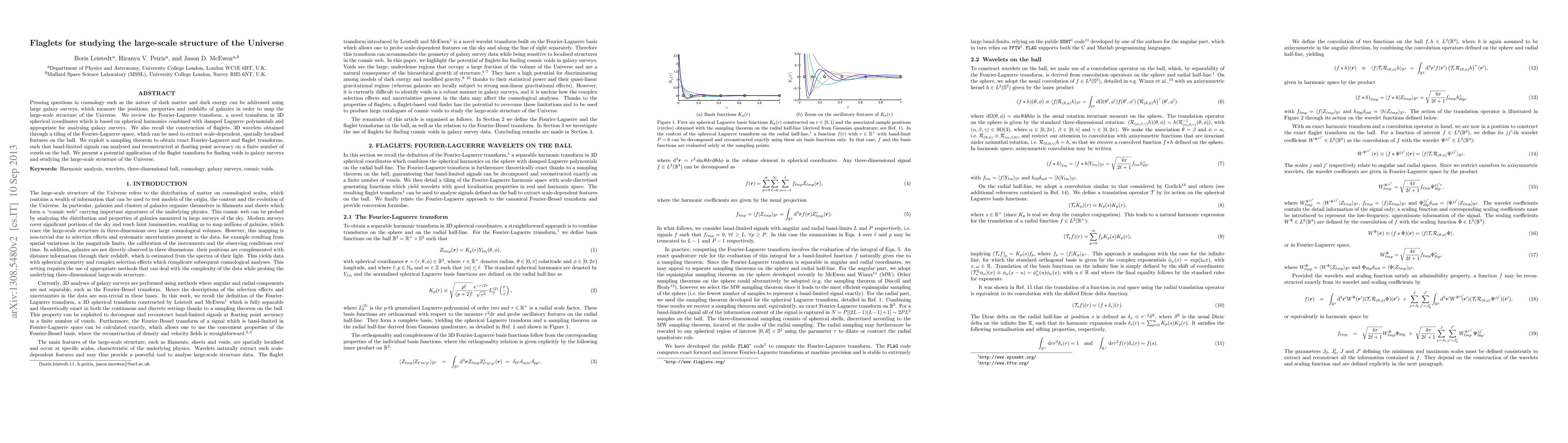 This paper reviews the Fourier-Laguerre transform and flaglets, a novel 3D wavelet technique, for analyzing galaxy surveys and mapping the large-scale structure of the Universe. The flaglet transform is used to extract localized features and can potentially identify voids in galaxy surveys, aiding in understanding dark matter and dark energy.