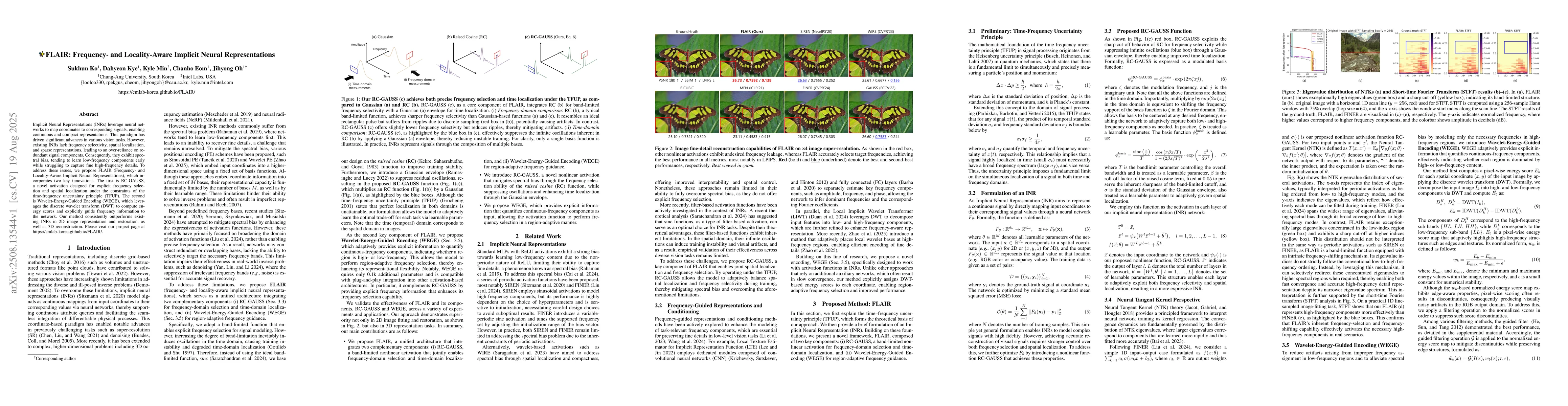 Implicit Neural Representations (INRs) leverage neural networks to map coordinates to corresponding signals, enabling continuous and compact representations. This paradigm has driven significant advances in various vision tasks. However, existing INRs lack frequency selectivity, spatial localization, and sparse representations, leading to an over-reliance on redundant signal components. Consequently, they exhibit spectral bias, tending to learn low-frequency components early while struggling to capture fine high-frequency details. To address these issues, we propose FLAIR (Frequency- and Locality-Aware Implicit Neural Representations), which incorporates two key innovations. The first is RC-GAUSS, a novel activation designed for explicit frequency selection and spatial localization under the constraints of the time-frequency uncertainty principle (TFUP). The second is Wavelet-Energy-Guided Encoding (WEGE), which leverages the discrete wavelet transform (DWT) to compute energy scores and explicitly guide frequency information to the network. Our method consistently outperforms existing INRs in 2D image representation and restoration, as well as 3D reconstruction.