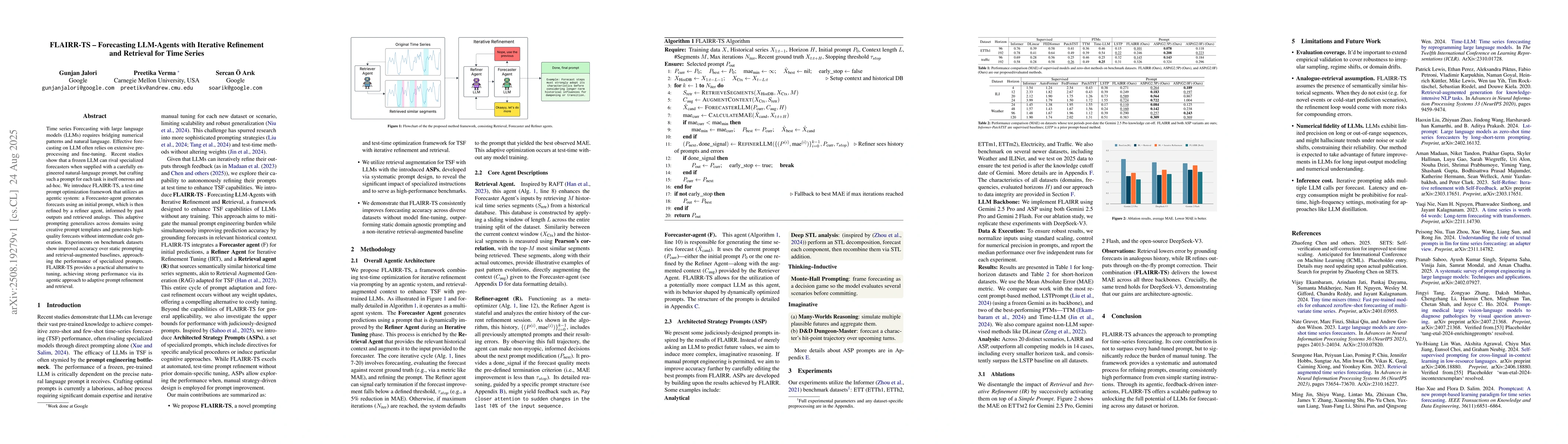 Time series Forecasting with large languagemodels (LLMs) requires bridging numericalpatterns and natural language. Effective fore-casting on LLM often relies on extensive pre-processing and fine-tuning.Recent studiesshow that a frozen LLM can rival specializedforecasters when supplied with a carefully en-gineered natural-language prompt, but craft-ing such a prompt for each task is itself oner-ous and ad-hoc. We introduce FLAIRR-TS, atest-time prompt optimization framework thatutilizes an agentic system: a Forecaster-agentgenerates forecasts using an initial prompt,which is then refined by a refiner agent, in-formed by past outputs and retrieved analogs.This adaptive prompting generalizes across do-mains using creative prompt templates andgenerates high-quality forecasts without inter-mediate code generation.Experiments onbenchmark datasets show improved accuracyover static prompting and retrieval-augmentedbaselines, approaching the performance ofspecialized prompts.FLAIRR-TS providesa practical alternative to tuning, achievingstrong performance via its agentic approach toadaptive prompt refinement and retrieval.