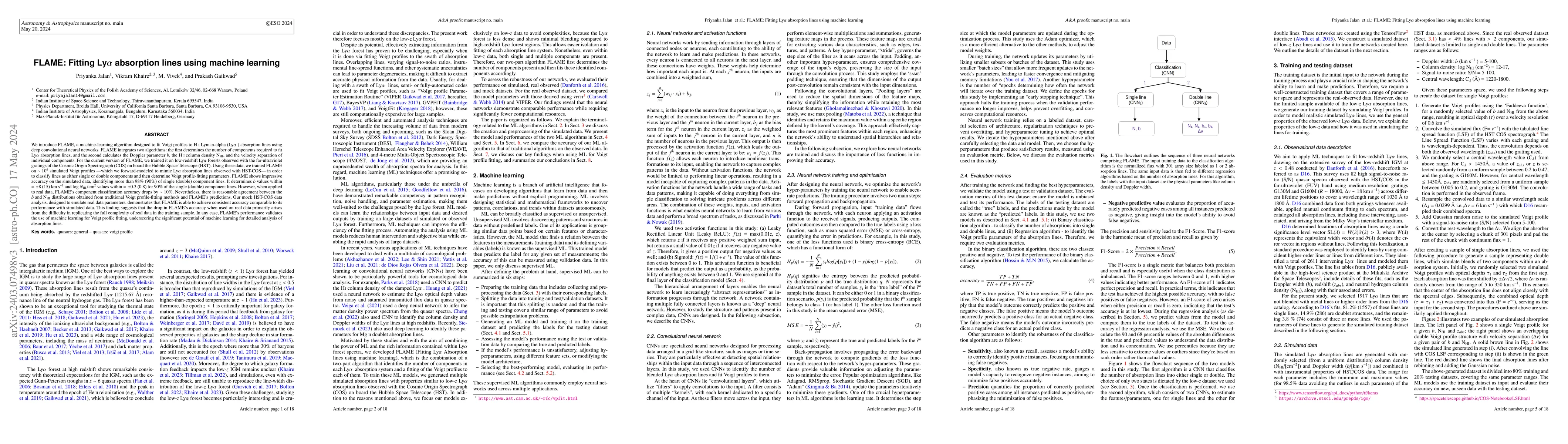FLAME, a machine-learning algorithm utilizing deep convolutional neural networks, accurately fits Voigt profiles to HI Lyman-alpha absorption lines, showing high accuracy on simulated data but a slight drop in real data classification due to training discrepancies.