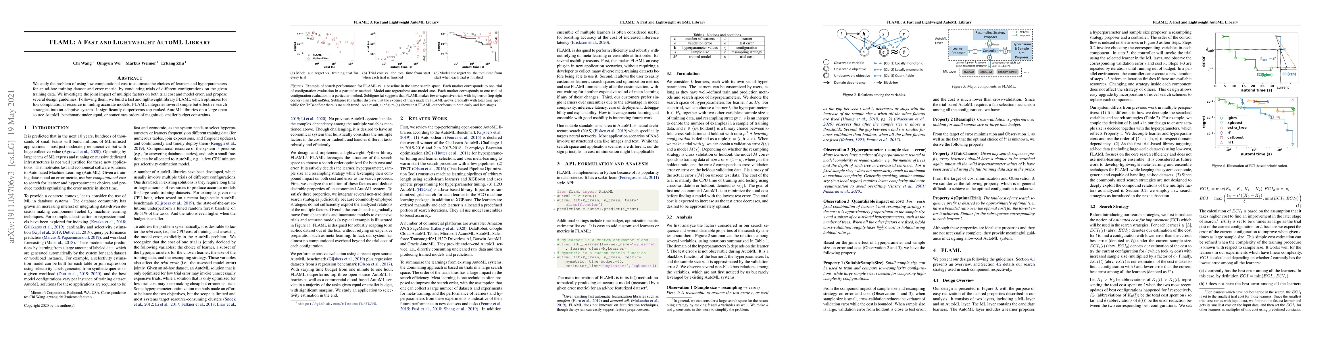 FLAML is a fast and lightweight AutoML library designed to optimize low computational resource usage while finding accurate models. It outperforms other AutoML libraries on benchmarks, often under significantly smaller budget constraints.
