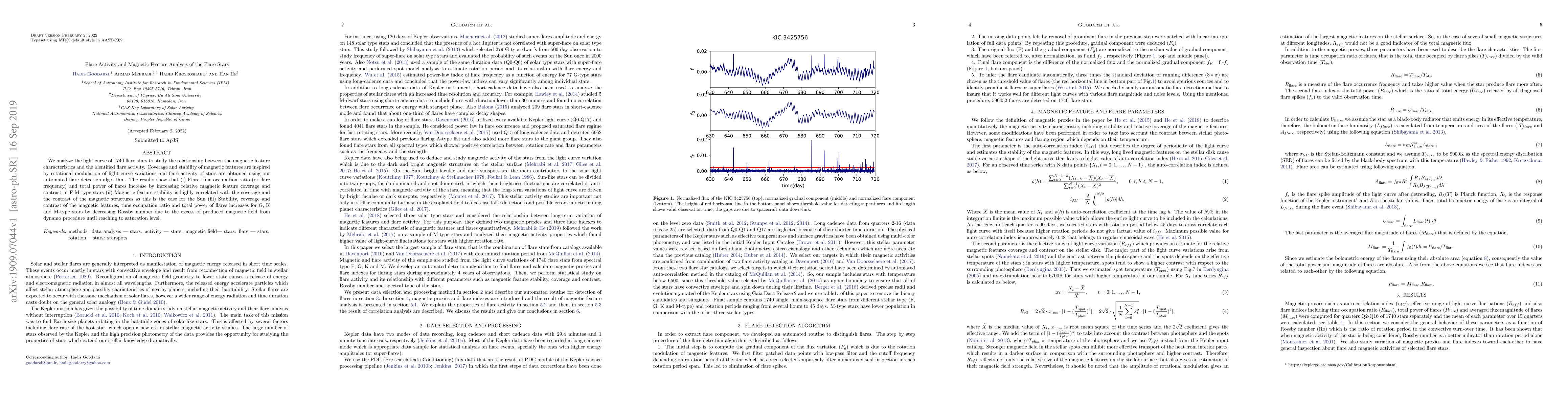 We analyze the light curve of 1740 flare stars to study the relationship between the magnetic feature characteristics and the identified flare activity. Coverage and stability of magnetic features are inspired by rotational modulation of light curve variations and flare activity of stars are obtained using our automated flare detection algorithm. The results show that (i) Flare time occupation ratio (or flare frequency) and total power of flares increase by increasing relative magnetic feature coverage and contrast in F-M type stars (ii) Magnetic feature stability is highly correlated with the coverage and the contrast of the magnetic structures as this is the case for the Sun (iii) Stability, coverage and contrast of the magnetic features, time occupation ratio and total power of flares increases for G, K and M-type stars by decreasing Rossby number due to the excess of produced magnetic field from dynamo procedure until reaching to saturation level.