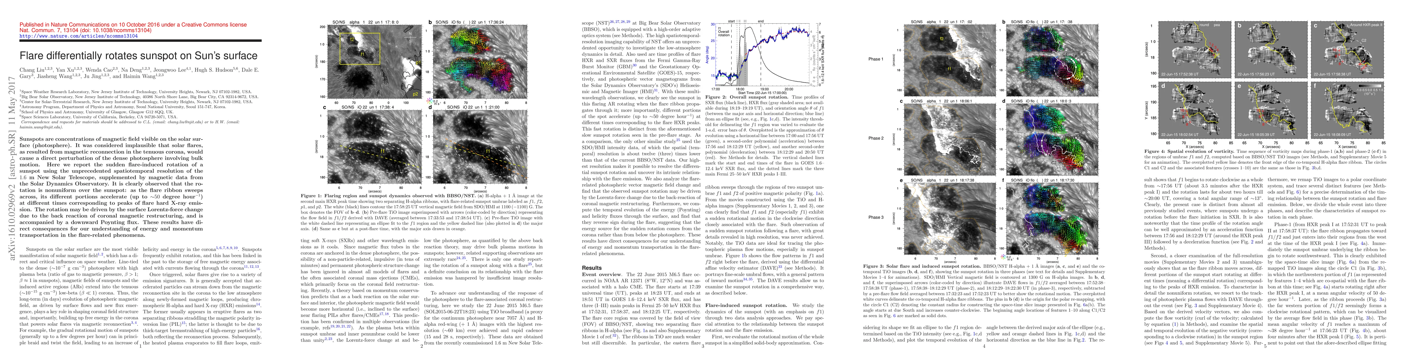 This study reveals that solar flares can induce non-uniform rotation of sunspots on the Sun's surface, with different parts accelerating at different times corresponding to flare activity peaks. The findings suggest that the rotation is driven by changes in surface Lorentz forces due to coronal magnetic restructuring.