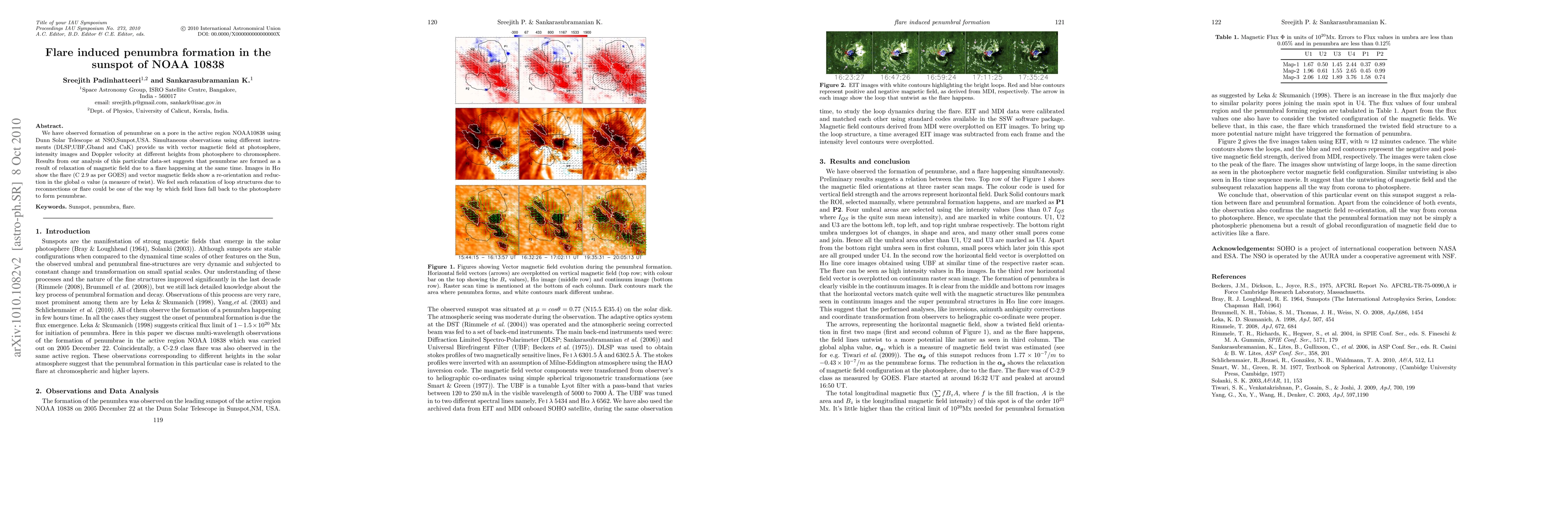 We have observed formation of penumbrae on a pore in the active region NOAA10838 using Dunn Solar Telescope at NSO,Sunpot,USA. Simultaneous observations using different instruments (DLSP,UBF,Gband and CaK) provide us with vector magnetic field at photosphere, intensity images and Doppler velocity at different heights from photosphere to chromosphere. Results from our analysis of this particular data-set suggests that penumbrae are formed as a result of relaxation of magnetic field due to a flare happening at the same time. Images in \Halpha\ show the flare (C 2.9 as per GOES) and vector magnetic fields show a re-orientation and reduction in the global $\alpha$ value (a measure of twist). We feel such relaxation of loop structures due to reconnections or flare could be one of the way by which field lines fall back to the photosphere to form penumbrae.