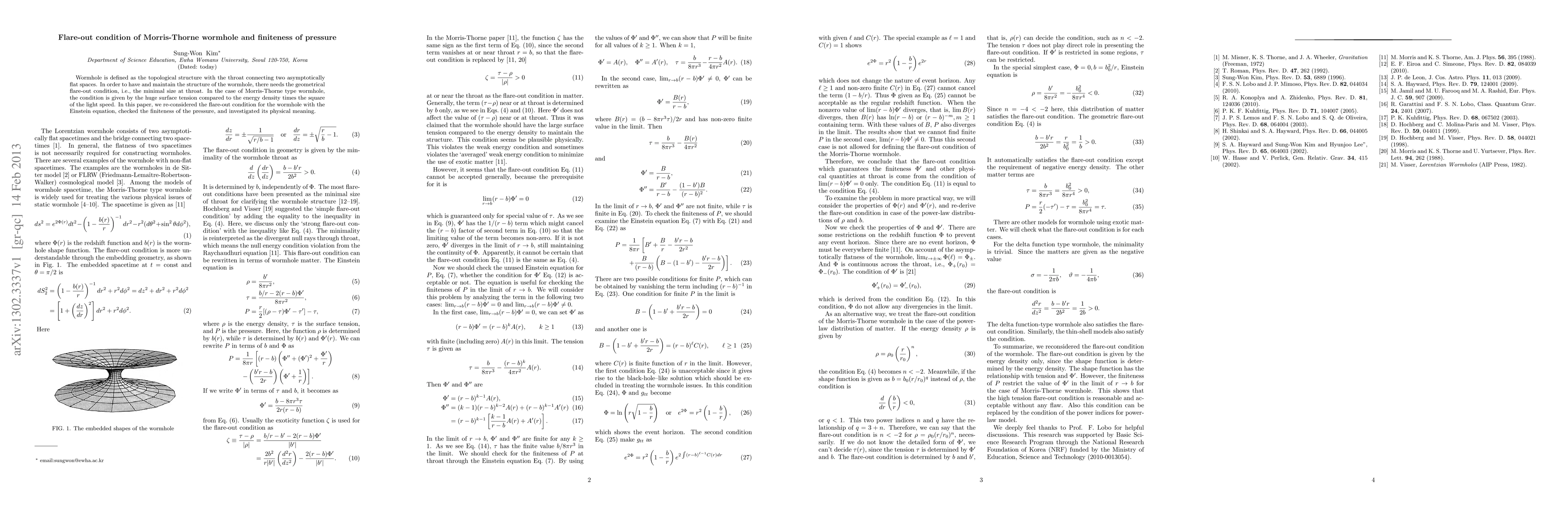 This paper re-examines the flare-out condition for Morris-Thorne wormholes under the Einstein equation, confirming the finiteness of pressure and exploring its physical implications for maintaining the wormhole's structure.