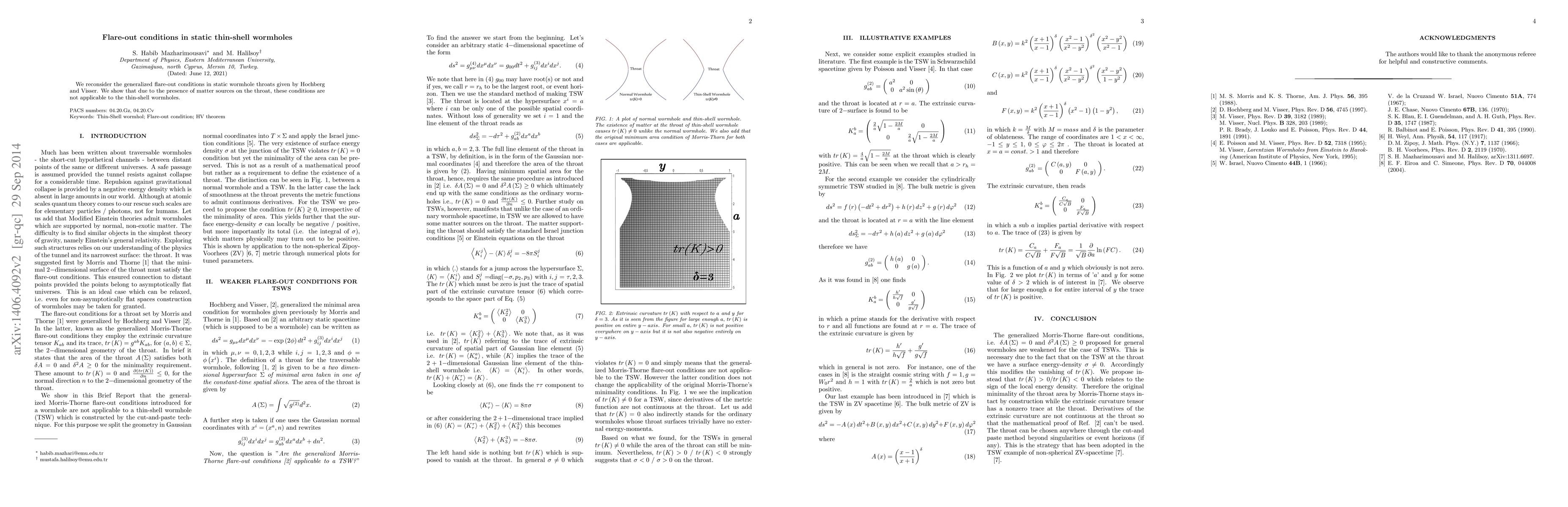 We reconsider the generalized flare-out conditions in static wormhole throats given by Hochberg and Visser. We show that due to the presence of matter sources on the throat, these conditions are not applicable to the thin-shell wormholes.