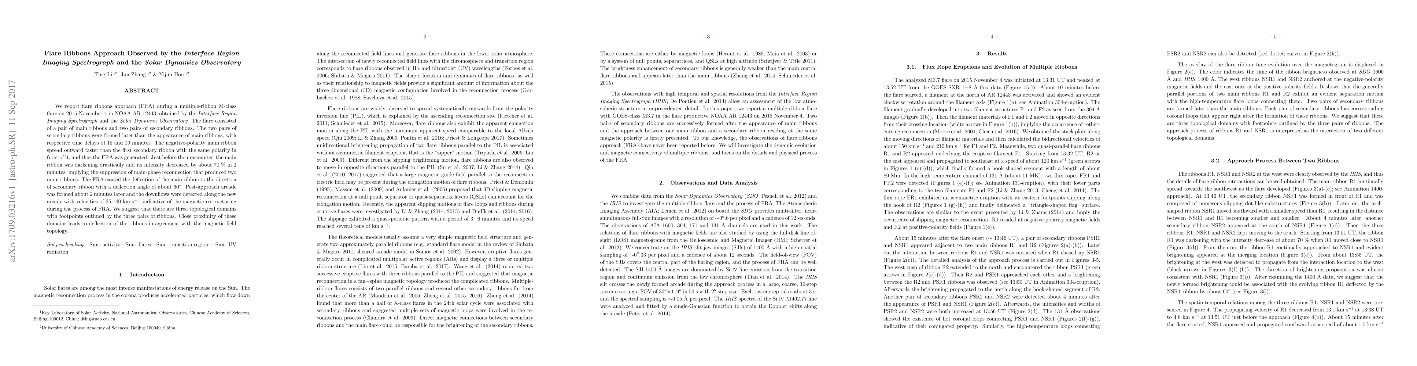 Researchers observed a rare phenomenon called flare ribbons approach (FRA) during an M-class solar flare, where two pairs of secondary ribbons formed later than the main ribbons, causing deflection and restructuring of the magnetic field.
