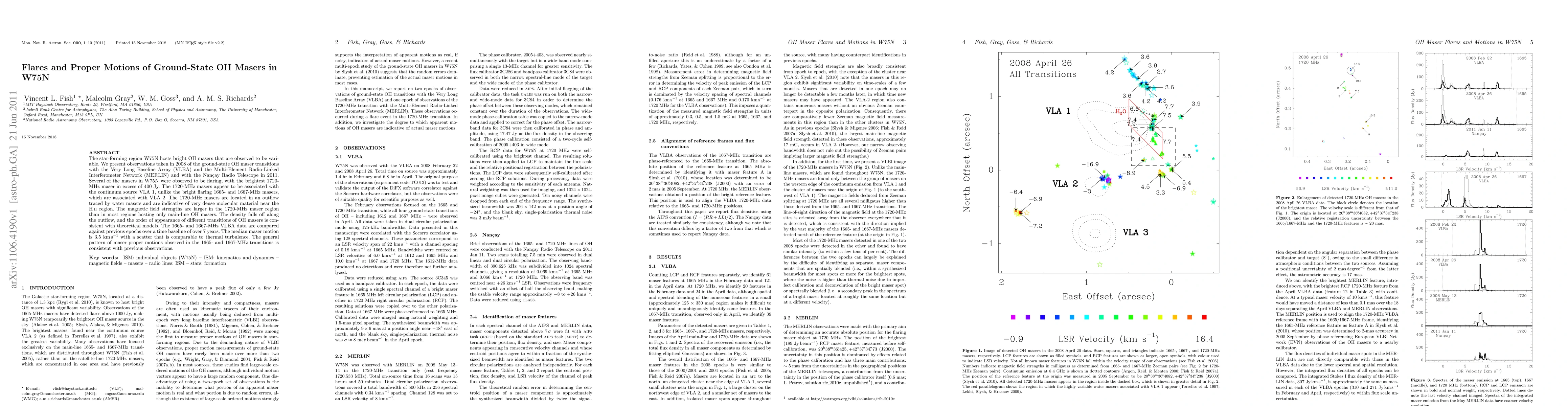 This study investigates the variability and proper motions of ground-state OH masers in the star-forming region W75N, revealing flares in several masers, particularly the brightest 1720-MHz maser. The 1720-MHz masers are linked to an outflow and dense molecular material, while the 1665- and 1667-MHz masers are associated with a different continuum source. Proper motions show a median speed of 3.5 km/s, consistent with previous observations.