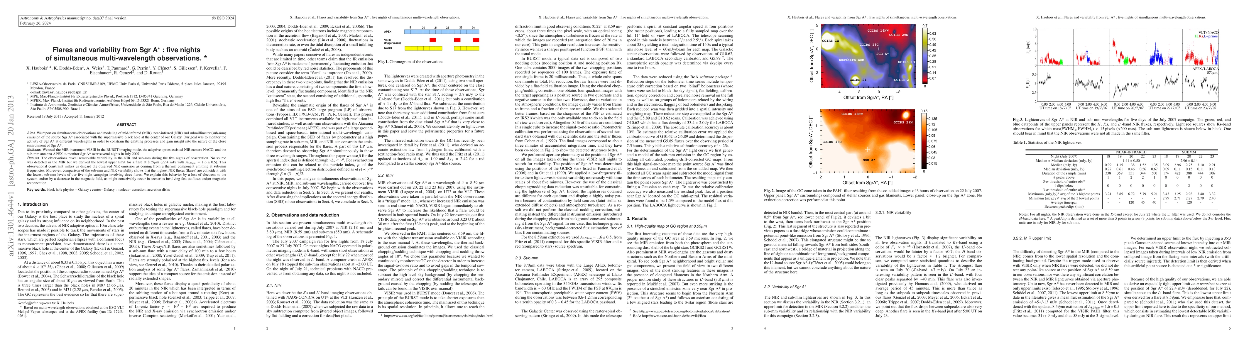 This paper reports on simultaneous multi-wavelength observations of Sgr A* revealing significant variability in NIR and sub-mm emissions over five nights. The lack of detection in mid-infrared and derived upper limits suggest the NIR flares are not thermal in nature, indicating possible electron loss or magnetic field changes.