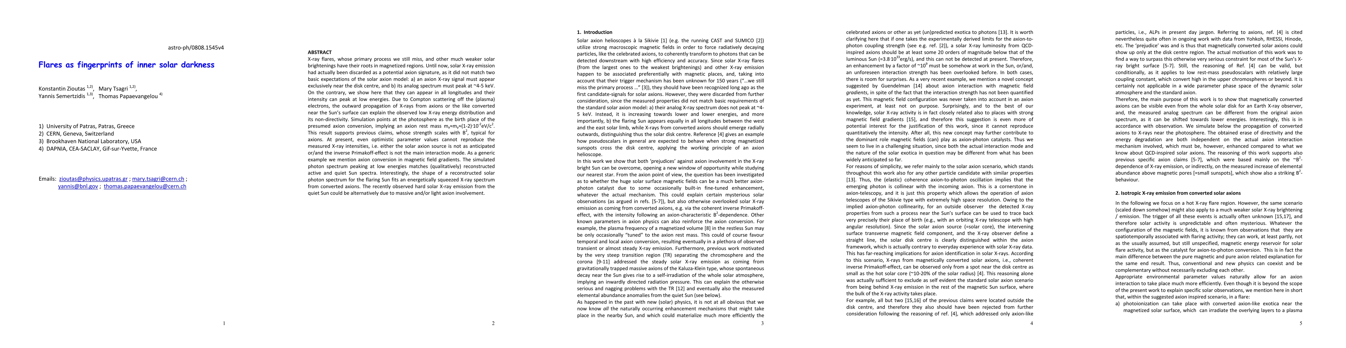X-ray flares and other solar brightenings have been discarded as potential axion signatures. An axion X-ray signal must appear exclusively near the disk centre, and its spectrum must peak at ~4.2keV, contrary to observation. We argue here that due to Compton scattering off the (plasma) electrons the outward propagation of X-rays from axions converted near the Sun's surface can explain energy distribution and non direcivity. Simulation points at the photosphere as the birth place of the presumed axion conversion, implying an axion rest mass of ~0.01eV. At present, even optimistic parameter values can not reproduce the measured intensities. The simulated photon spectrum peaks at low energies. Quiet Sun hard X-rays are in favour of massive and/or light axion involvement.