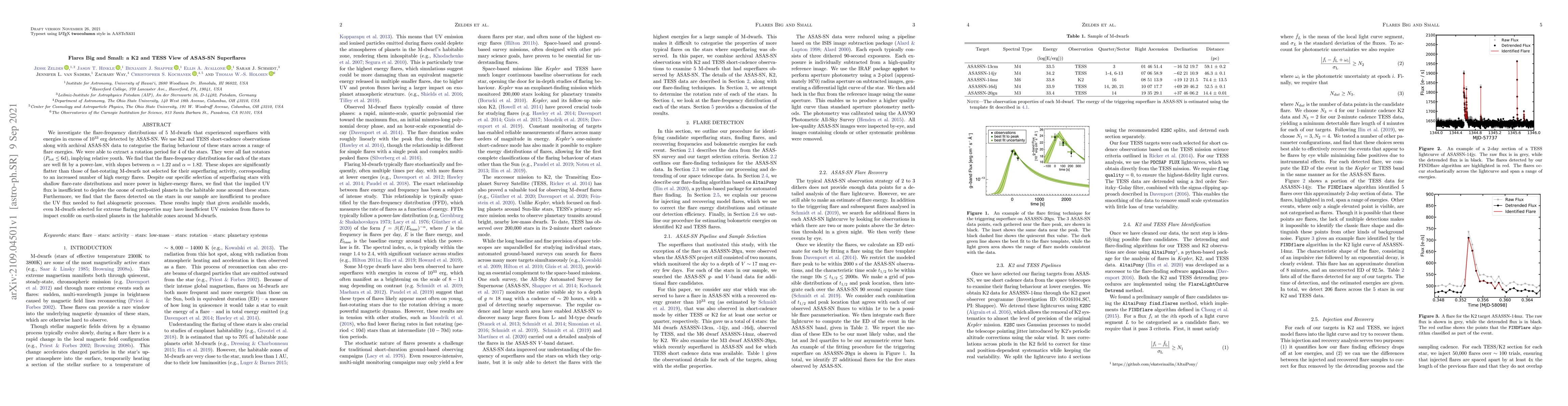 We investigate the flare-frequency distributions of 5 M-dwarfs that experienced superflares with energies in excess of $10^{33}$ erg detected by ASAS-SN. We use K2 and TESS short-cadence observations along with archival ASAS-SN data to categorise the flaring behaviour of these stars across a range of flare energies. We were able to extract a rotation period for 4 of the stars. They were all fast rotators ($P_{\mathrm{rot}} \leq 6 \textrm{d}$), implying relative youth. We find that the flare-frequency distributions for each of the stars are well fit by a power-law, with slopes between $\alpha = 1.22$ and $\alpha= 1.82$. These slopes are significantly flatter than those of fast-rotating M-dwarfs not selected for their superflaring activity, corresponding to an increased number of high energy flares. Despite our specific selection of superflaring stars with shallow flare-rate distributions and more power in higher-energy flares, we find that the implied UV flux is insufficient to deplete the ozone of earth-sized planets in the habitable zone around these stars. Furthermore, we find that the flares detected on the stars in our sample are insufficient to produce the UV flux needed to fuel abiogenetic processes. These results imply that given available models, even M-dwarfs selected for extreme flaring properties may have insufficient UV emission from flares to impact exolife on earth-sized planets in the habitable zones around M-dwarfs.
