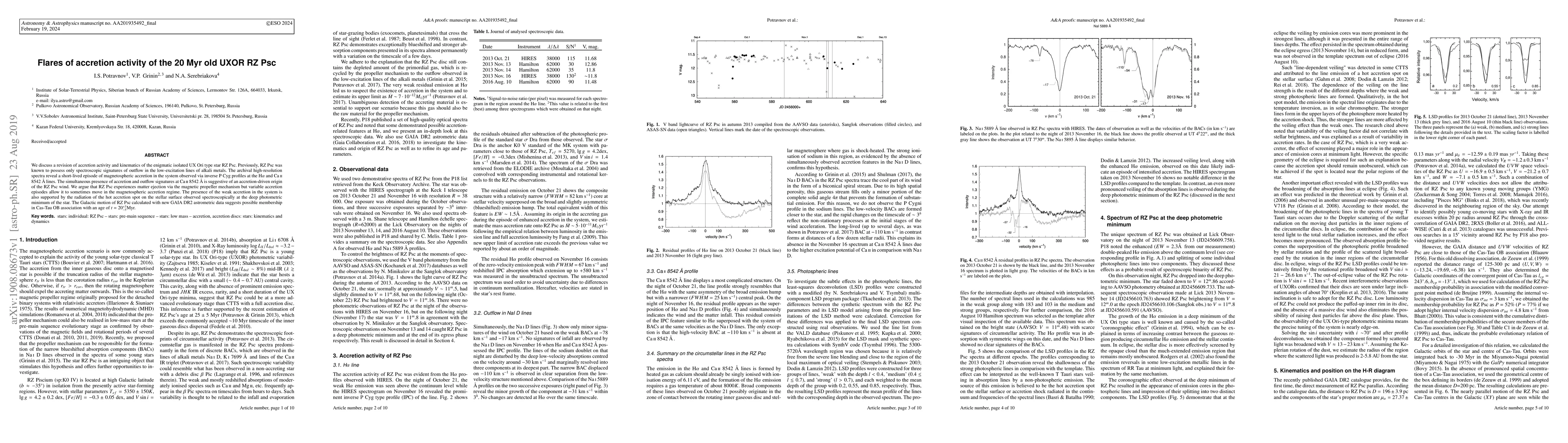 We discuss a revision of accretion activity and kinematics of the enigmatic isolated UX Ori type star RZ Psc. Previously, RZ Psc was known to possess only spectroscopic signatures of outflow in the low-excitation lines of alkali metals. The archival high-resolution spectra reveal a short-lived episode of magnetospheric accretion in the system observed via inverse P Cyg profiles at the H$\alpha$ and CaII 8542 $\unicode{x212B}$ lines. The simultaneous presence of accretion and outflow signatures at CaII 8542 $\unicode{x212B}$ is suggestive of an accretion-driven origin of the RZ Psc wind. We argue that RZ Psc experiences matter ejection via the magnetic propeller mechanism but variable accretion episodes allow it to sometimes move in the magnetospheric accretion regime. The presence of the weak accretion in the system is also supported by the radiation of the hot accretion spot on the stellar surface observed spectroscopically at the deep photometric minimum of the star. The Galactic motion of RZ Psc calculated with new GAIA DR2 astrometric data suggests possible membership in Cas-Tau OB association with an age of $t=20^{+3}_{-5}$ Myr.