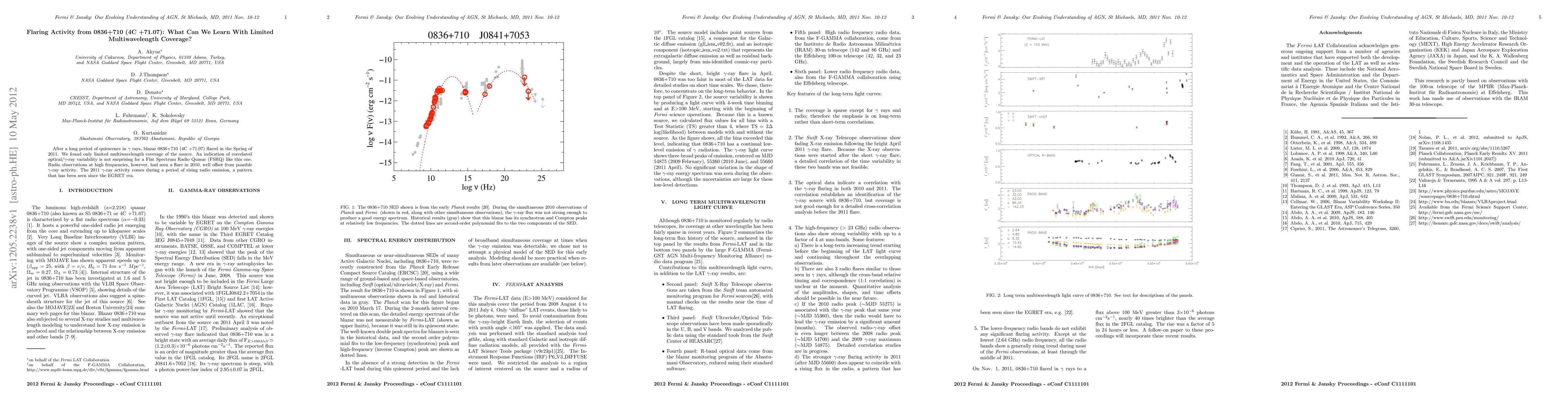 After a long period of quiescence in \gamma-rays, blazar 0836+710 (4C +71.07) flared in the Spring of 2011. We found only limited multiwavelength coverage of the source. An indication of correlated optical / \gamma-ray variability is not surprising for a Flat Spectrum Radio Quasar (FSRQ) like this one. Radio observations at high frequencies, however, had seen a flare in 2010, well offset from possible \gamma-ray activity. The 2011 \gamma-ray activity comes during a period of rising radio emission, a pattern that has been seen since the EGRET era.
