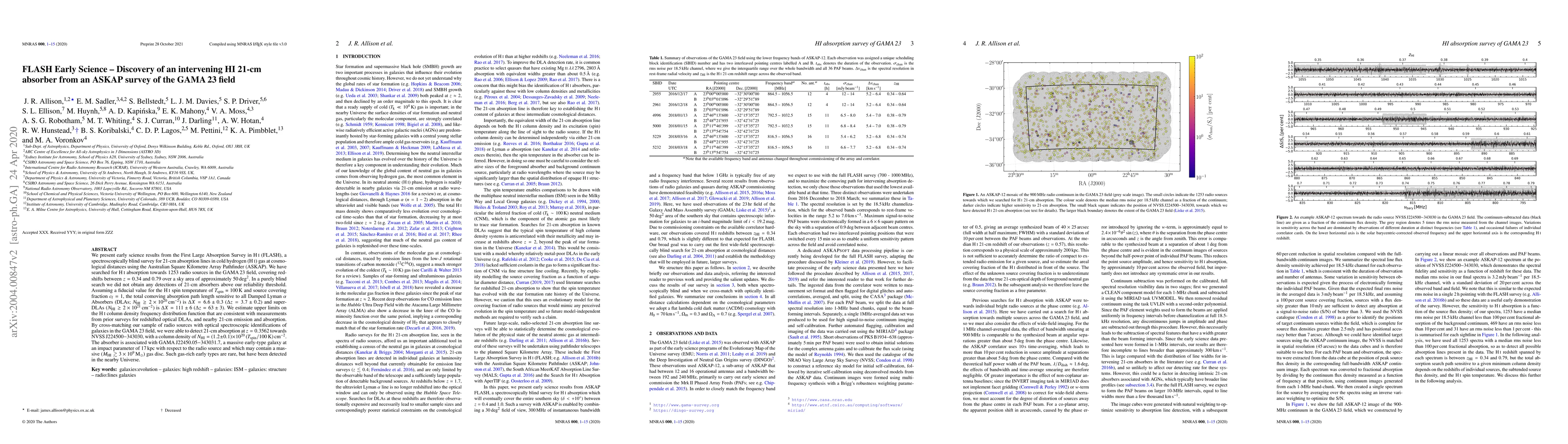 The FLASH Early Science survey using ASKAP found no 21-cm HI absorption above a reliability threshold in a blind search of 1253 radio sources. However, targeted detection of 21-cm absorption was made towards NVSS J224500$-$343030, associated with a massive early-type galaxy, revealing a rare gas-rich early-type system.