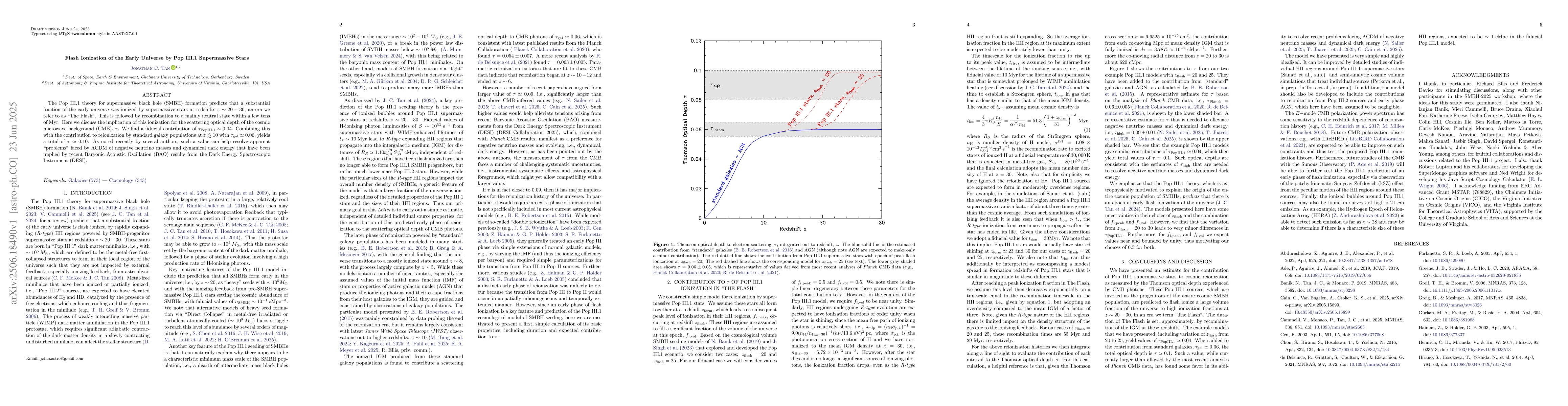 The Pop III.1 theory for supermassive black hole (SMBH) formation predicts that a substantial fraction of the early universe was ionized by supermassive stars at redshifts $z\sim20-30$, an era we refer to as ``The Flash''. This is followed by recombination to a mainly neutral state within a few tens of Myr. Here we discuss the implication of this ionization for the scattering optical depth of the cosmic microwave background (CMB), $\tau$. We find a fiducial contribution of $\tau_{\rm PopIII.1}\sim0.04$. Combining this with the contribution to reionization by standard galaxy populations at $z\lesssim 10$ with $\tau_{\rm gal}\simeq0.06$, yields a total of $\tau\simeq0.10$. As noted recently by several authors, such a value can help resolve apparent ``problems'' faced by $\Lambda$CDM of negative neutrino masses and dynamical dark energy that have been implied by recent Baryonic Acoustic Oscillation (BAO) results from the Dark Energy Spectroscopic Instrument (DESI).