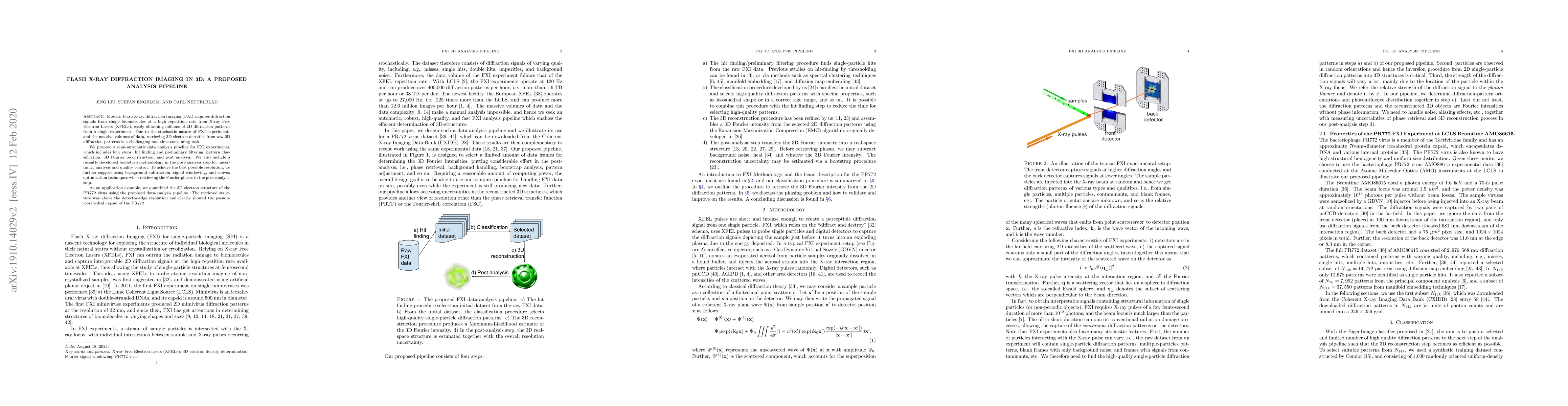 This paper proposes a semi-automatic analysis pipeline for Flash X-ray diffraction imaging (FXI) to convert 2D diffraction patterns into 3D electron densities, including hit finding, pattern classification, 3D reconstruction, and post-analysis with bootstrap methodology. The method was successfully applied to determine the 3D structure of the PR772 virus.