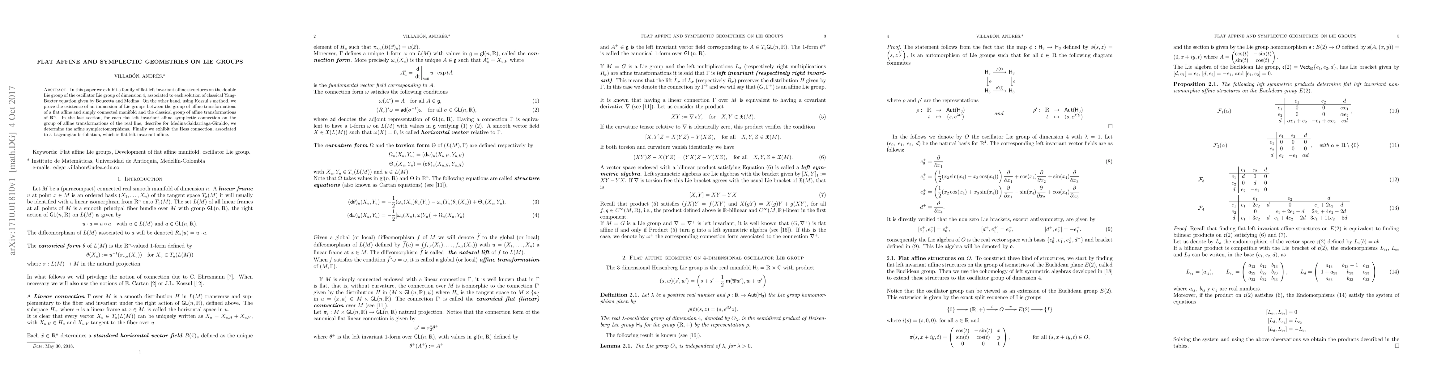 The paper provides a detailed analysis of flat affine and symplectic geometries on Lie groups, including explicit constructions and proofs of immersions.
