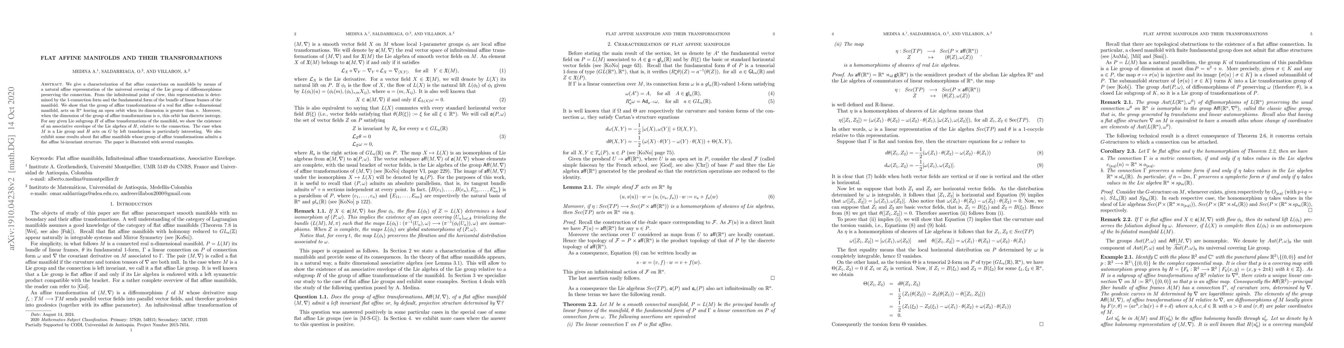 Research characterizes flat affine connections on manifolds through a representation of the universal covering of diffeomorphism groups, revealing properties about their actions on real vector spaces and Lie subgroups.