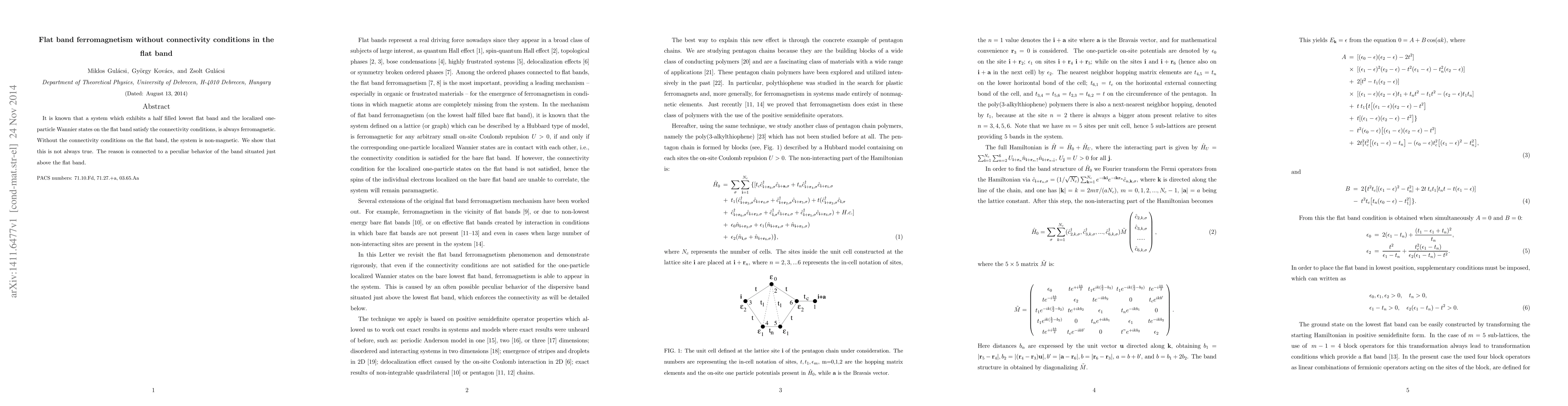 Researchers found that flat band ferromagnetism can occur in a system without satisfying traditional connectivity conditions for its flat band. This is due to the behavior of the band above the flat band.