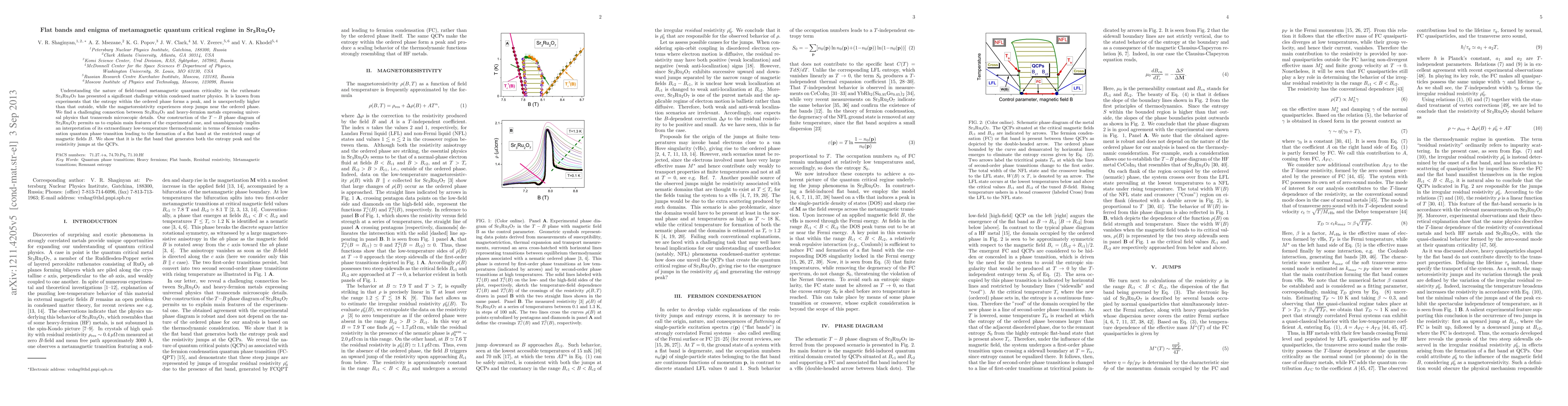 This paper explores the metamagnetic quantum critical regime in Sr3Ru2O7, revealing a connection between its behavior and heavy-fermion metals. The study explains experimental anomalies like entropy peaks and resistivity jumps via a fermion condensation quantum phase transition, attributing these phenomena to the formation of a flat band under specific magnetic fields.