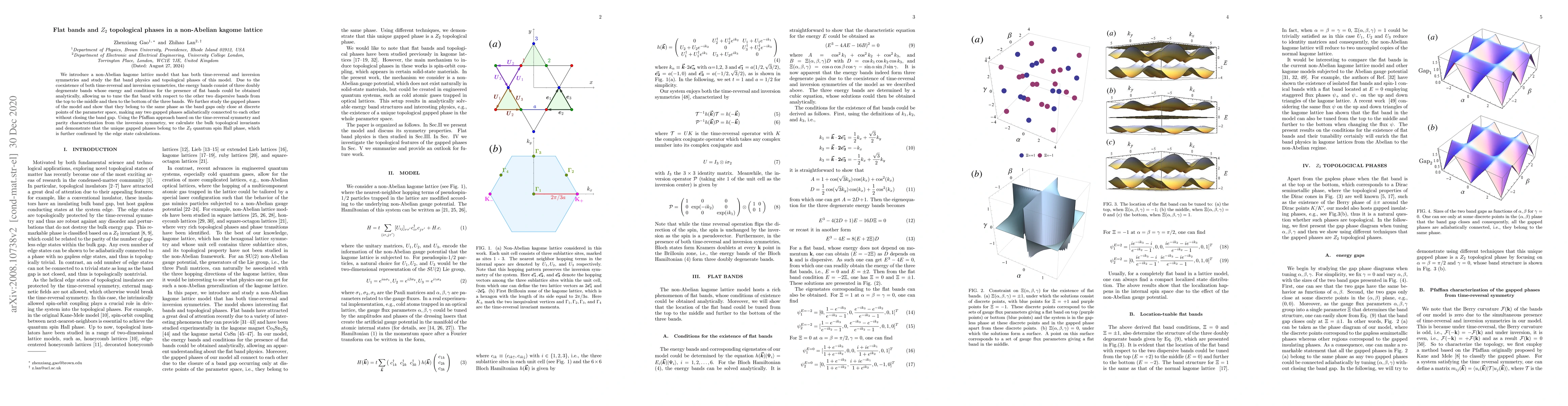 This paper introduces a non-Abelian kagome lattice model with time-reversal and inversion symmetries, demonstrating analytically tunable flat bands and identifying $Z_2$ topological phases characterized by bulk invariants and edge states.