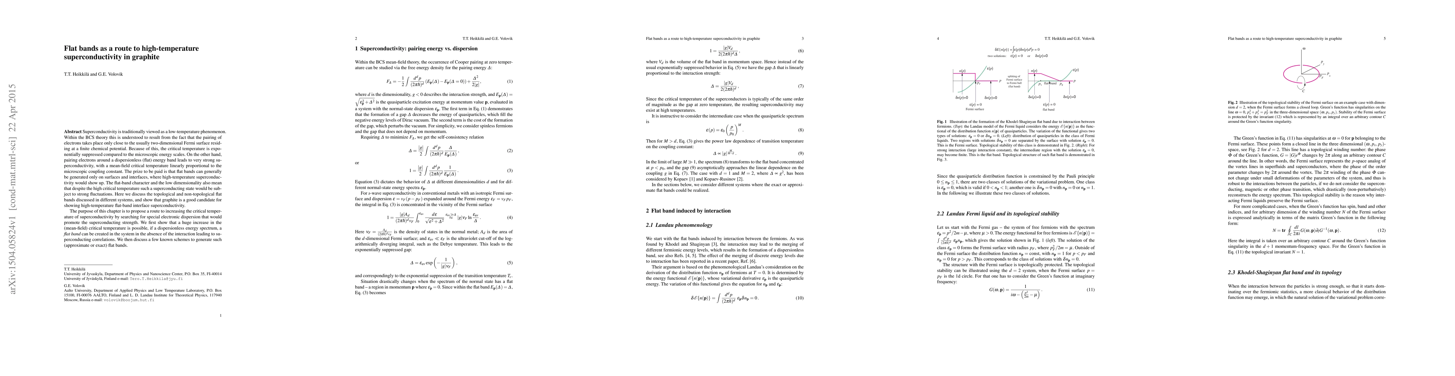 This paper explores how flat bands in graphite could lead to high-temperature superconductivity, contrasting traditional low-temperature superconductivity. It argues that flat bands, typically found at surfaces and interfaces, can enable strong superconductivity with a critical temperature proportional to the coupling constant, potentially overcoming conventional low-temperature limitations.