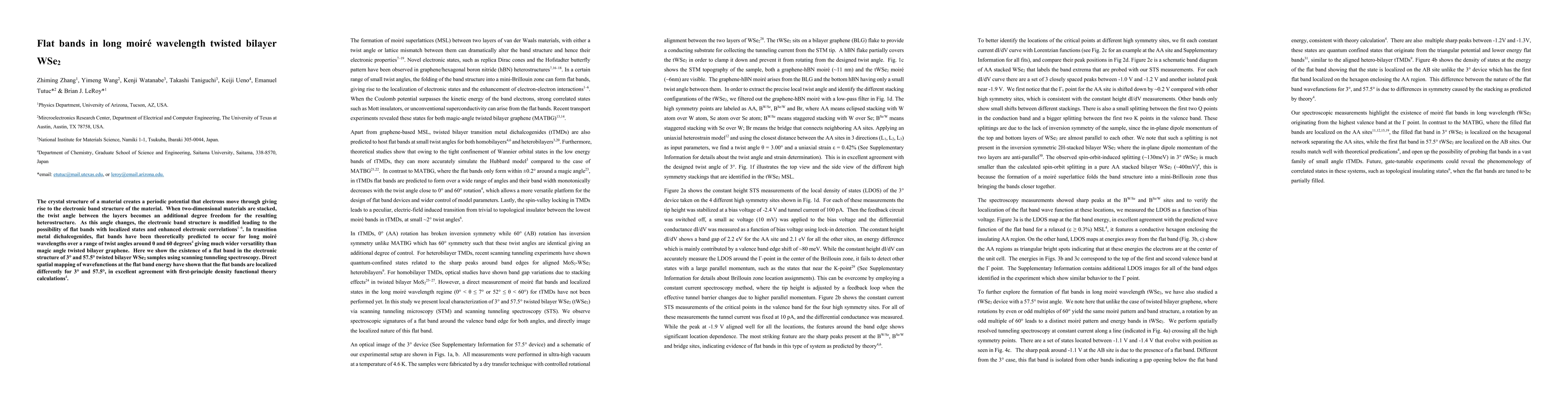 The study demonstrates the presence of flat bands in twisted bilayer WSe2 at 3° and 57.5° twist angles, confirmed via scanning tunneling spectroscopy and spatial wavefunction mapping, with localization patterns matching theoretical predictions. This finding extends the range of flat band occurrences beyond the magic angle in graphene.