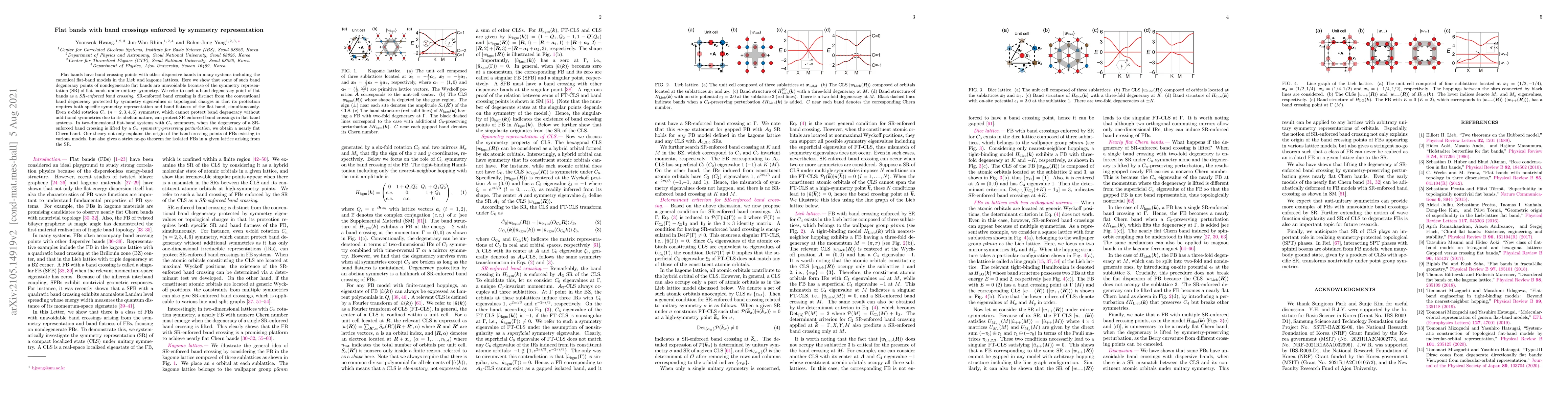 This research demonstrates that certain band degeneracy points in flat bands are inherently enforced by the symmetry representation of the flat band, termed SR-enforced band crossings. Unlike conventional symmetry-protected degeneracies, SR-enforced crossings require specific symmetry representations and flat band characteristics.