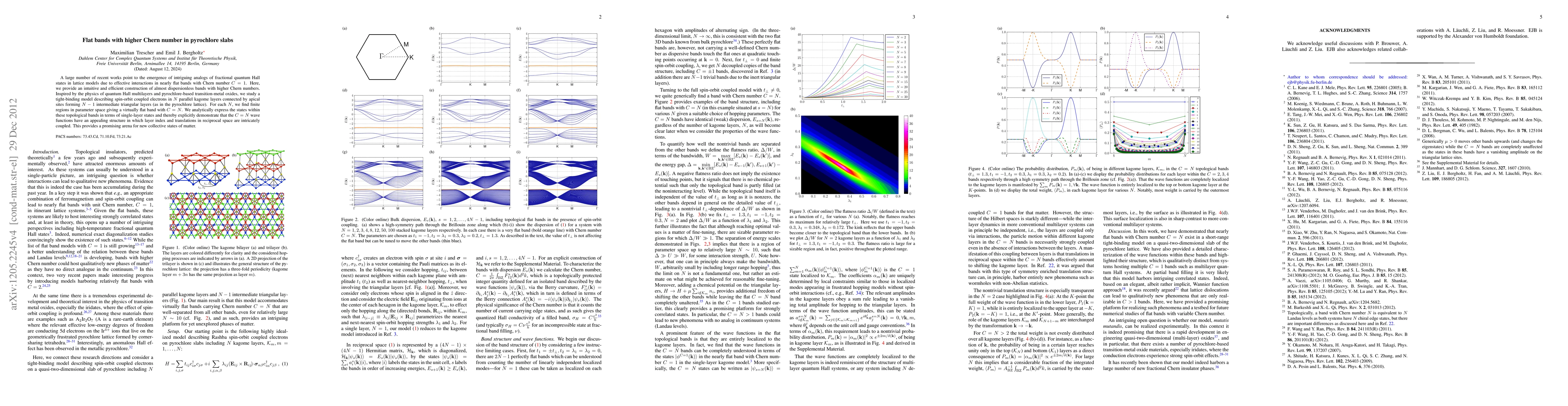 This research constructs nearly flat bands in pyrochlore slabs with higher Chern numbers (C=N), inspired by quantum Hall multilayers. It uses a tight-binding model to analytically express these topological states, showing an intricate coupling between layer index and translations in reciprocal space, which may lead to novel collective states of matter.