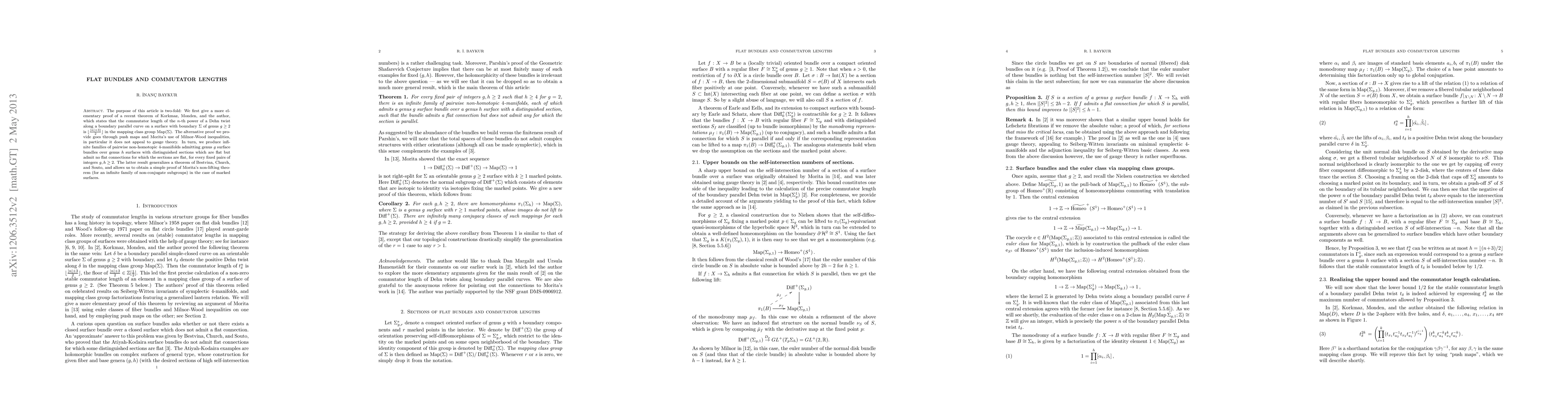 The purpose of this article is two-fold: We first give a more elementary proof of a recent theorem of Korkmaz, Monden, and the author, which states that the commutator length of the n-th power of a Dehn twist along a boundary parallel curve on a surface with boundary S of genus g at least two is the floor of (|n|+3)/2 in the mapping class group of S. The alternative proof we provide goes through push maps and Morita's use of Milnor-Wood inequalities, in particular it does not appeal to gauge theory. In turn, we produce infinite families of pairwise non-homotopic 4-manifolds admitting genus g surface bundles over genus h surfaces with distinguished sections which are flat but admit no flat connections for which the sections are flat, for every fixed pairs of integers g and h at least two. The latter result generalizes a theorem of Bestvina, Church, and Souto, and allows us to obtain a simple proof of Morita's non-lifting theorem (for an infinite family of non-conjugate subgroups) in the case of marked surfaces.