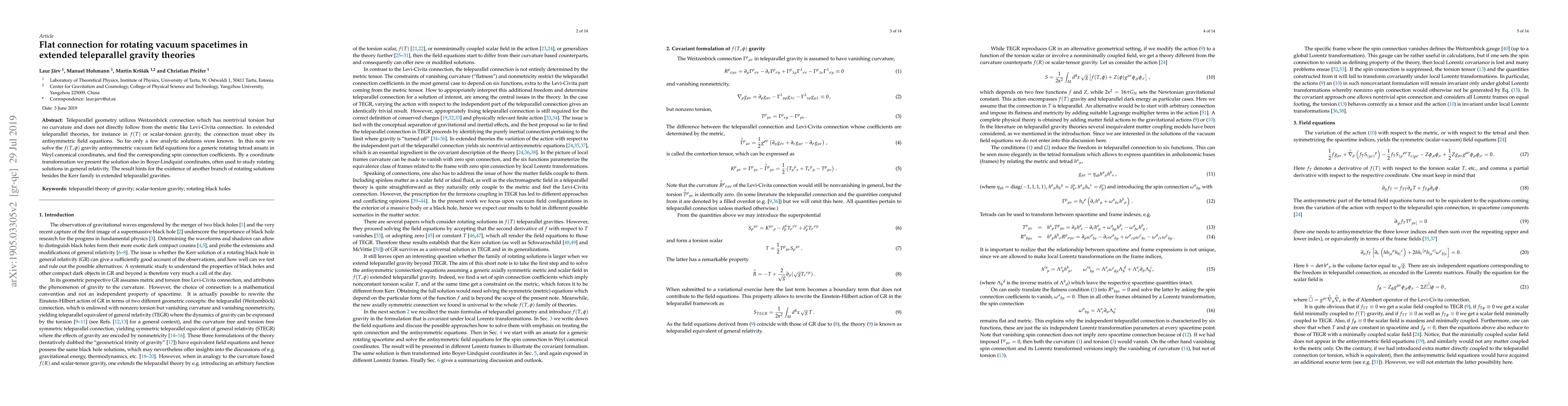 Teleparallel geometry utilizes Weitzenb\"ock connection which has nontrivial torsion but no curvature and does not directly follow from the metric like Levi-Civita connection. In extended teleparallel theories, for instance in $f(T)$ or scalar-torsion gravity, the connection must obey its antisymmetric field equations. So far only a few analytic solutions were known. In this note we solve the $f(T,\phi)$ gravity antisymmetric vacuum field equations for a generic rotating tetrad ansatz in Weyl canonical coordinates, and find the corresponding spin connection coefficients. By a coordinate transformation we present the solution also in Boyer-Lindquist coordinates, often used to study rotating solutions in general relativity. The result hints for the existence of another branch of rotating solutions besides the Kerr family in extended teleparallel gravities.