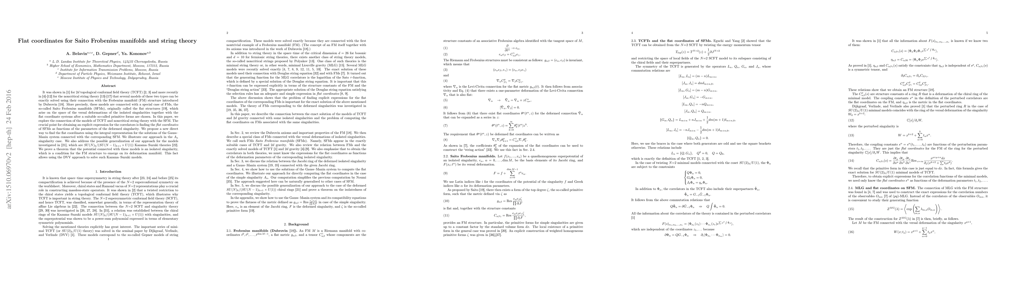 This paper investigates the connection between models of 2D Topological Conformal Field Theory (TCFT) and non-critical String theory with Saito Frobenius manifolds (SFM), focusing on finding explicit expressions for correlators via flat coordinates. It proposes a method using integral representations for Gauss-Manin systems to determine these coordinates, and considers potential generalizations to Kazama-Suzuki theories.