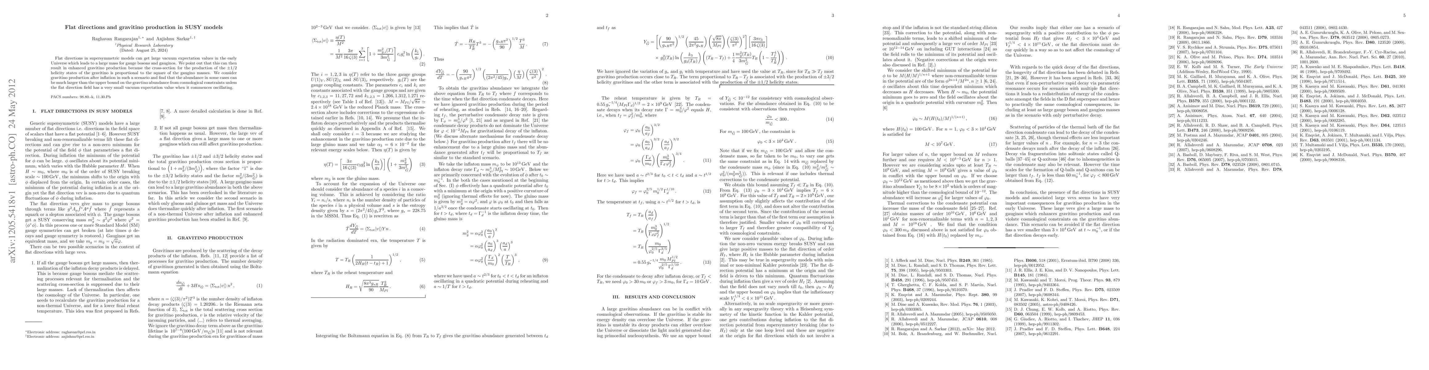 This paper discusses how large vacuum expectation values of flat directions in supersymmetric models can lead to enhanced gravitino production in the early Universe, as the gravitino production cross-section is proportional to the square of gaugino masses. It finds that under certain conditions, gravitino abundance could exceed cosmological constraints unless the field has a very small initial value.