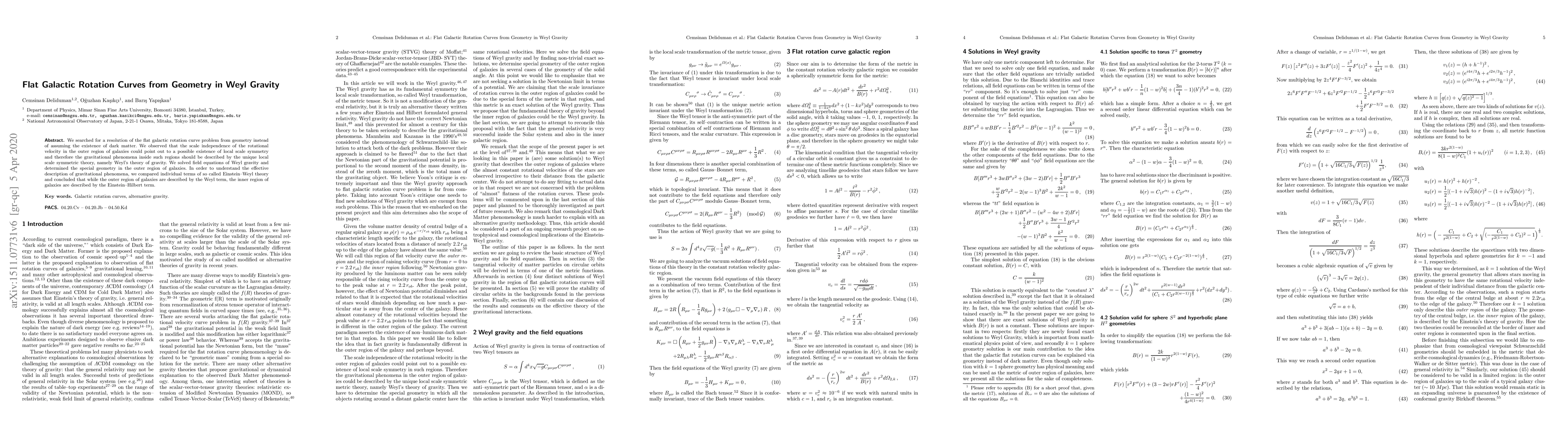 This paper proposes a resolution to the flat galactic rotation curve problem using Weyl gravity instead of dark matter, suggesting that local scale symmetry in the outer regions of galaxies can be described by Weyl's theory of gravity. The study concludes that the outer regions are influenced by the Weyl term, while the inner regions follow the Einstein-Hilbert term.