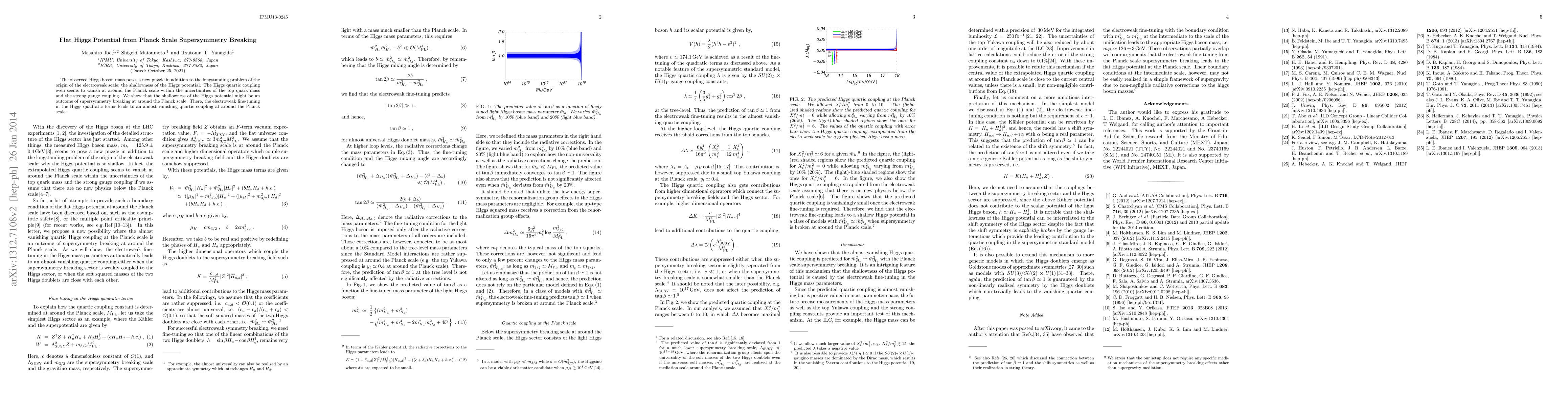This paper proposes that the shallow Higgs potential, which complicates the electroweak scale, could arise from supersymmetry breaking at the Planck scale, leading to a nearly vanishing quartic coupling in the Higgs sector. This mechanism alleviates the longstanding issue of electroweak fine-tuning.