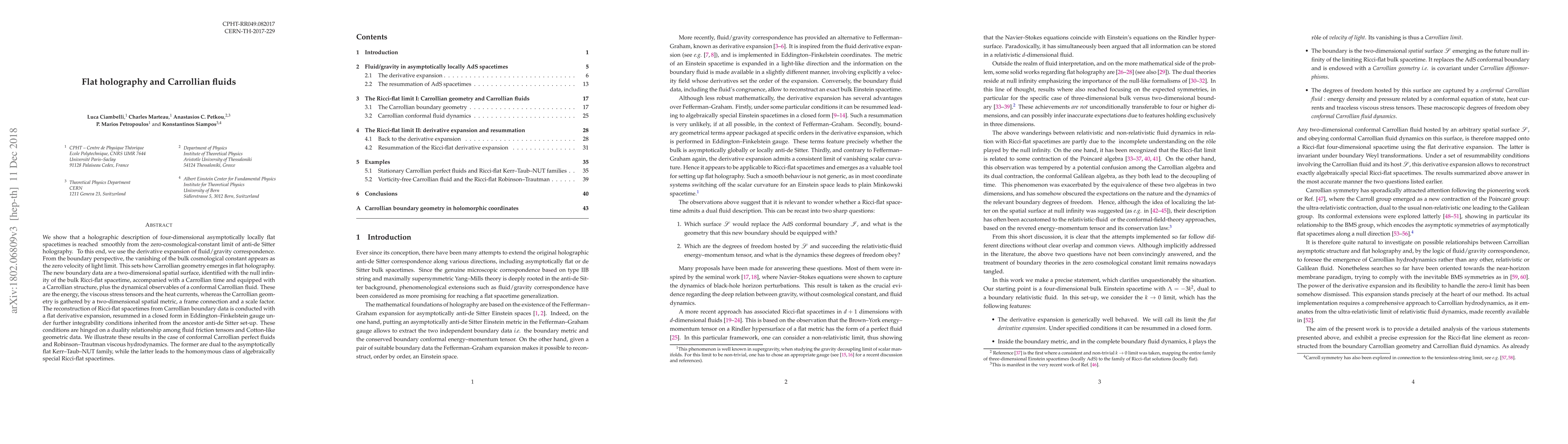The paper presents a detailed analysis of how Carrollian geometry and fluid dynamics emerge from the zero-cosmological-constant limit of AdS holography, introducing a new set of boundary data and demonstrating a closed-form reconstruction of Ricci-flat spacetimes.