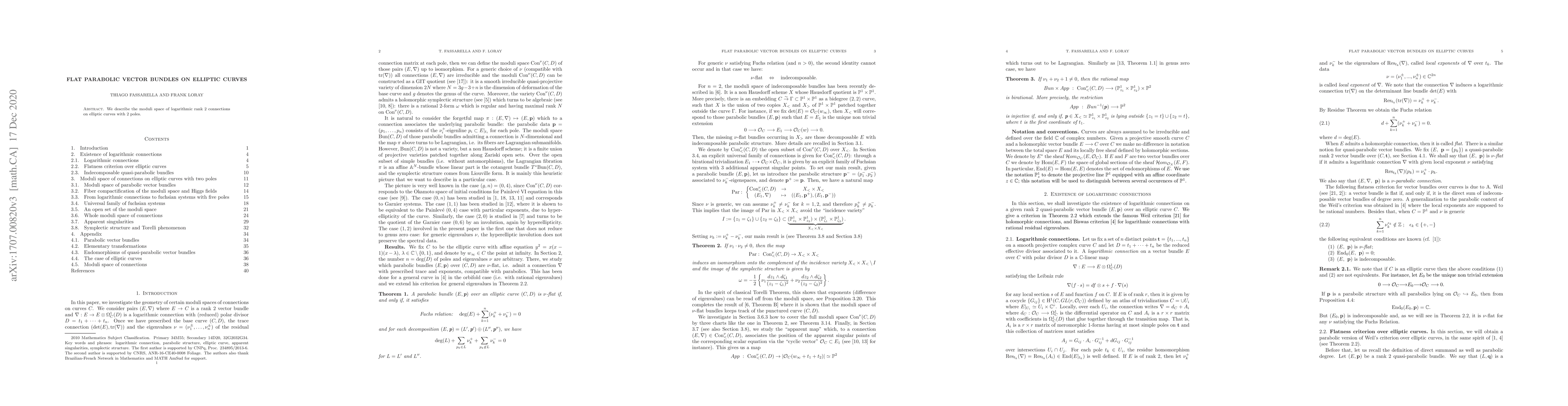 Summary: This paper examines the moduli space for logarithmic rank 2 vector bundles with 2 specified poles on elliptic curves, focusing on the properties and structure of flat parabolic connections. It provides a detailed analysis of the underlying geometric and topological characteristics.