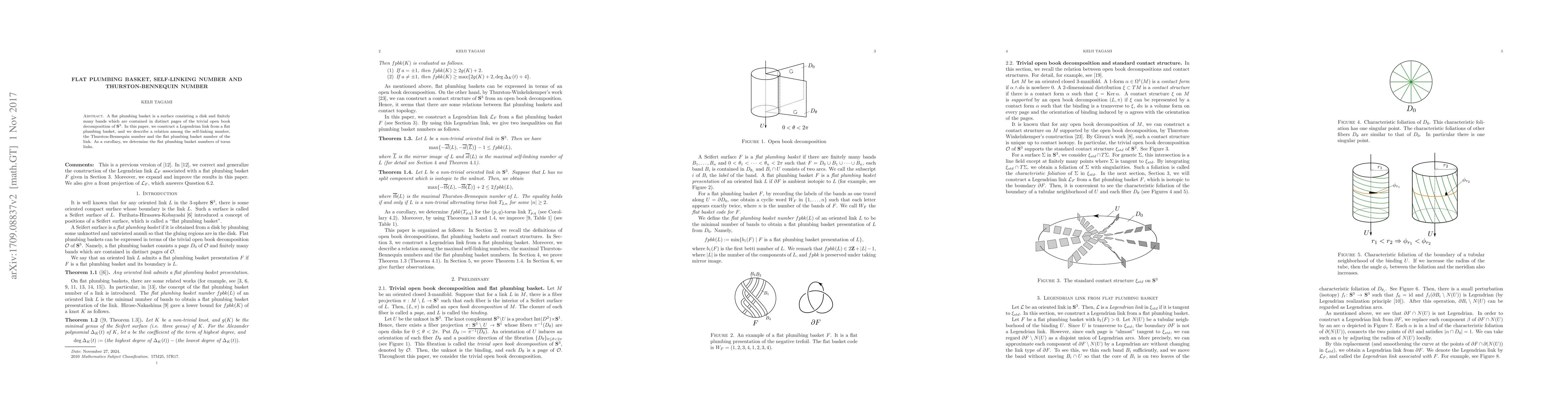 This paper constructs a Legendrian link from a flat plumbing basket and establishes a relationship between its self-linking number, Thurston-Bennequin number, and the flat plumbing basket number, concluding with the determination of these numbers for torus links.