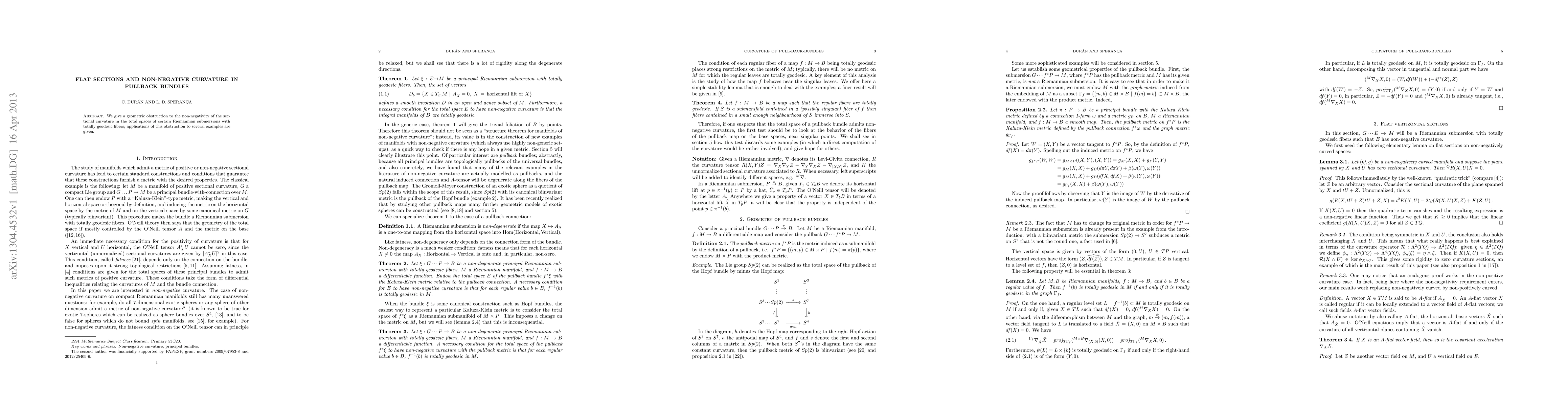 We give a geometric obstruction to the non-negativity of the sectional curvature in the total spaces of certain Riemannian submersions with totally geodesic fibers; applications of this obstruction to several examples are given.