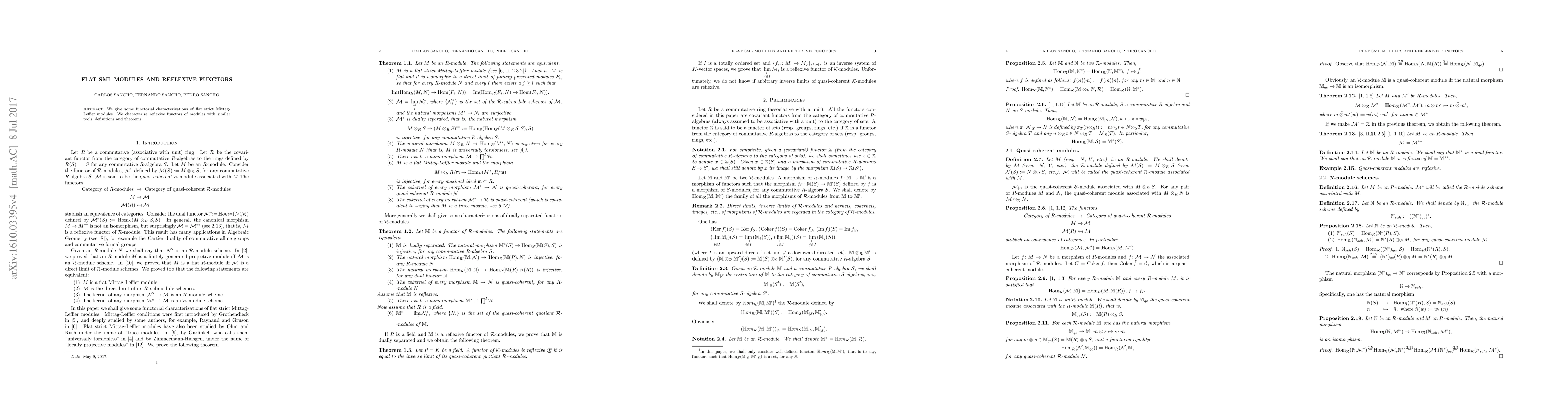 Summary: This paper provides functorial characterizations of flat strict Mittag-Leffler modules and examines reflexive functors within the same framework, employing consistent definitions and theorems.