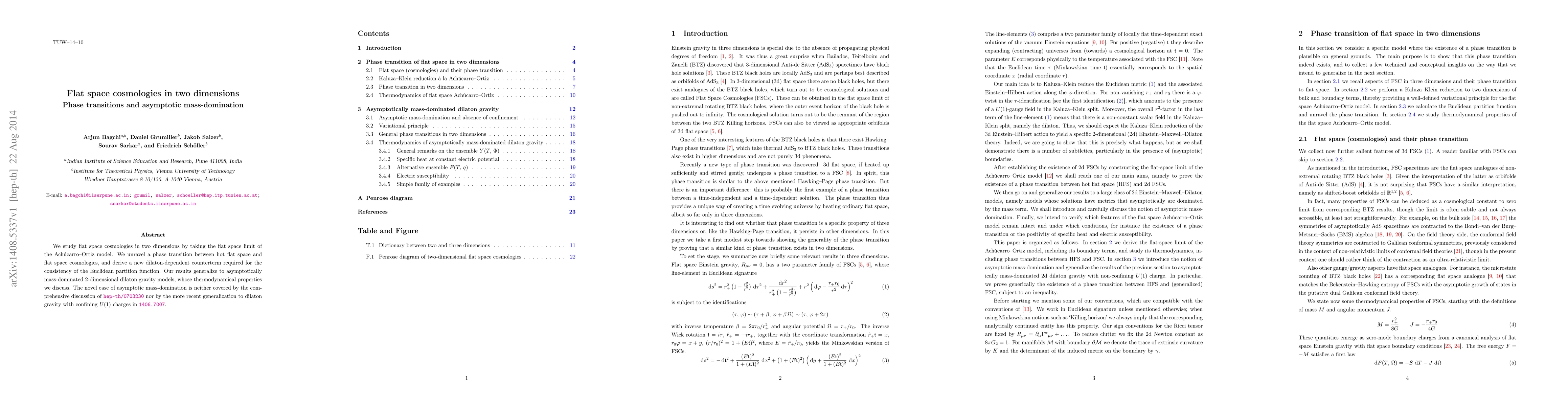 Researchers investigate phase transitions in 2D flat space cosmologies, revealing a new counterterm requirement for consistency, and discuss thermodynamic properties of asymptotically mass-dominated models.