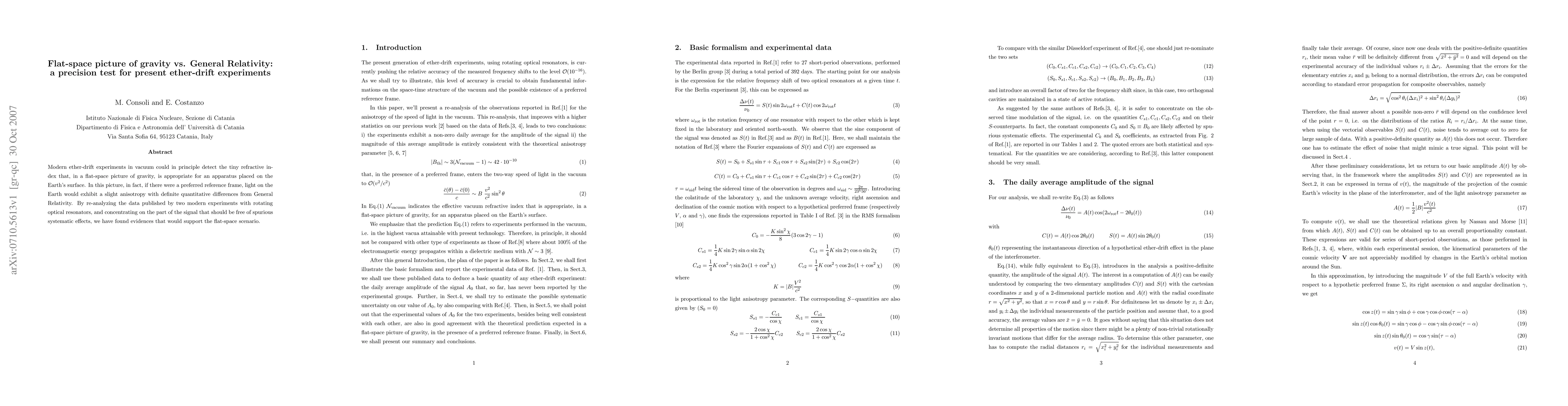 This paper re-examines modern ether-drift experiments to detect a refractive index anisotropy in a flat-space gravity model, finding evidence supporting this model over General Relativity. The analysis focuses on data from rotating optical resonator experiments, suggesting a preferred reference frame.