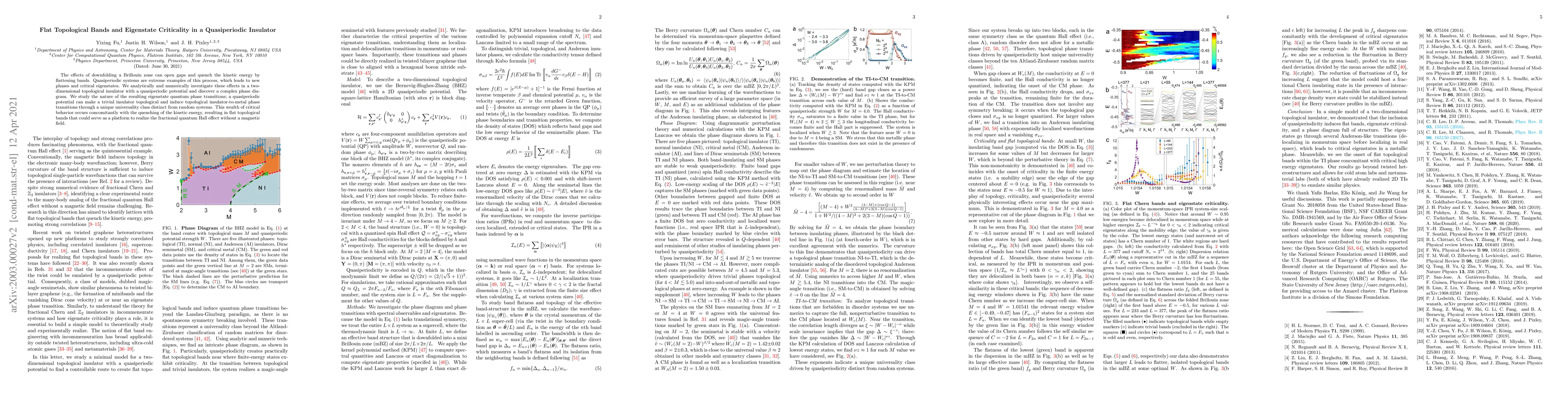 The effects of downfolding a Brillouin zone can open gaps and quench the kinetic energy by flattening bands. Quasiperiodic systems are extreme examples of this process, which leads to new phases and critical eigenstates. We analytically and numerically investigate these effects in a two dimensional topological insulator with a quasiperiodic potential and discover a complex phase diagram. We study the nature of the resulting eigenstate quantum phase transitions; a quasiperiodic potential can make a trivial insulator topological and induce topological insulator-to-metal phase transitions through a unique universality class distinct from random systems. This wealth of critical behavior occurs concomitantly with the quenching of the kinetic energy, resulting in flat topological bands that could serve as a platform to realize the fractional quantum Hall effect without a magnetic field.