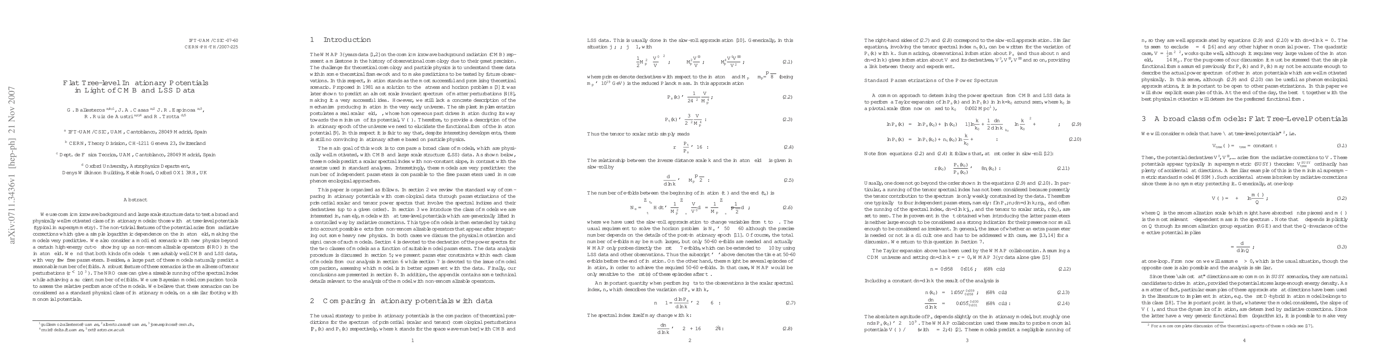 We use cosmic microwave background and large scale structure data to test a broad and physically well-motivated class of inflationary models: those with flat tree-level potentials (typical in supersymmetry). The non-trivial features of the potential arise from radiative corrections which give a simple logarithmic dependence on the inflaton field, making the models very predictive. We also consider a modified scenario with new physics beyond a certain high-energy cut-off showing up as non-renormalizable operators (NRO) in the inflaton field. We find that both kinds of models fit remarkably well CMB and LSS data, with very few free parameters. Besides, a large part of these models naturally predict a reasonable number of e-folds. A robust feature of these scenarios is the smallness of tensor perturbations (r < 10^{-3}). The NRO case can give a sizeable running of the spectral index while achieving a sufficient number of e-folds. We use Bayesian model comparison tools to assess the relative performance of the models. We believe that these scenarios can be considered as a standard physical class of inflationary models, on a similar footing with monomial potentials.