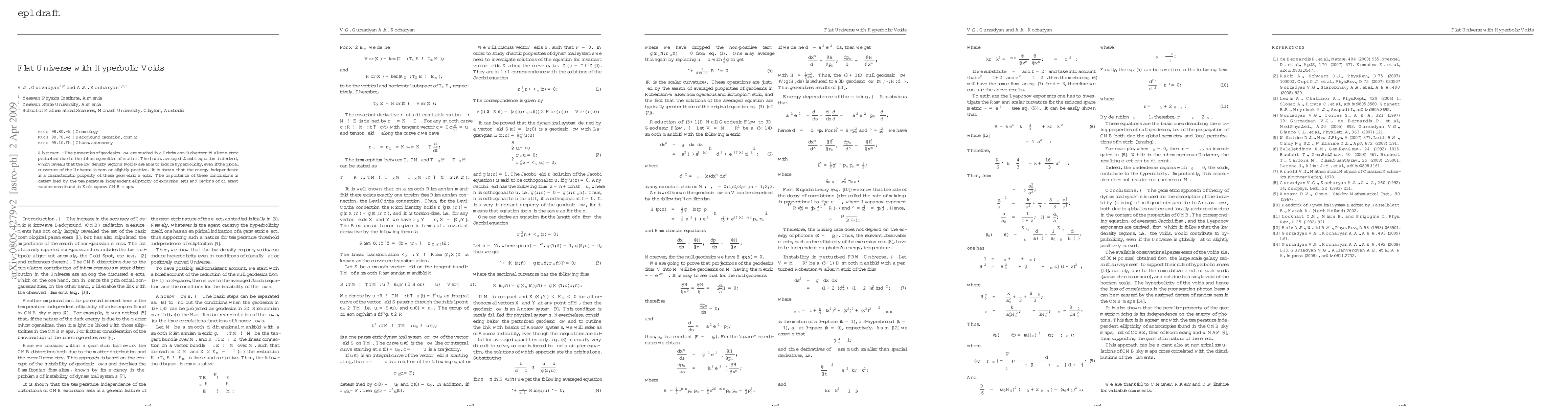 The properties of geodesics flow are studied in a Friedmann-Robertson-Walker metric perturbed due to the inhomogeneities of matter. The basic, averaged Jacobi equation is derived, which reveals that the low density regions (voids) are able to induce hyperbolicity, even if the global curvature of the Universe is zero or slightly positive. It is shown that the energy independence is a characteristic property of these geometric effects. The importance of these conclusions is determined by the temperature independent ellipticity of excursion sets and regions of different randomness found in Kolmogorov CMB maps.