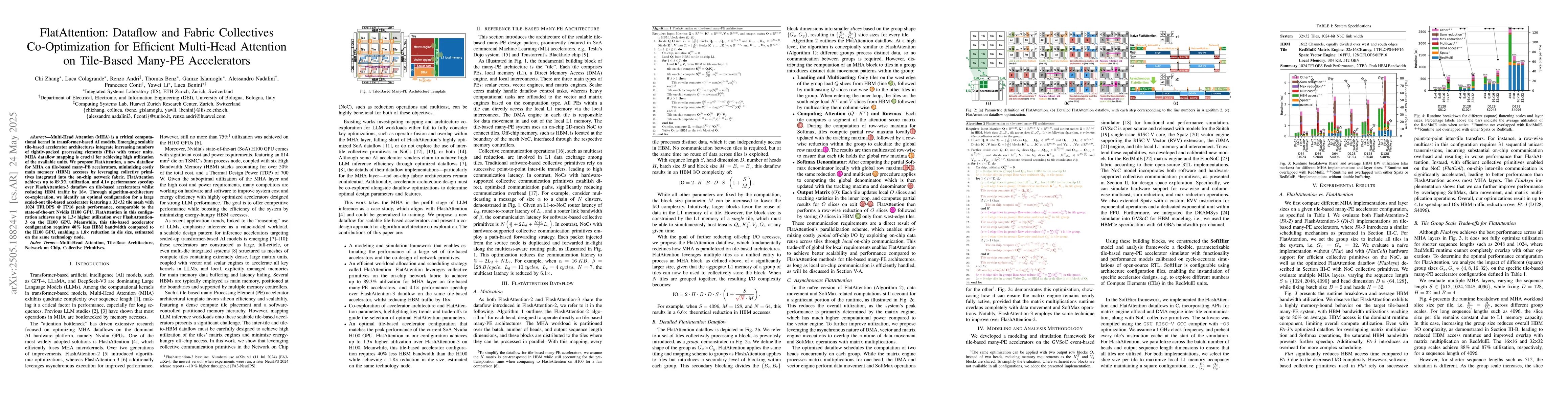 Researchers propose FlatAttention, a dataflow optimization for multi-head attention on tile-based many-PE accelerators, achieving up to 89.3% utilization and 4.1x performance speedup.