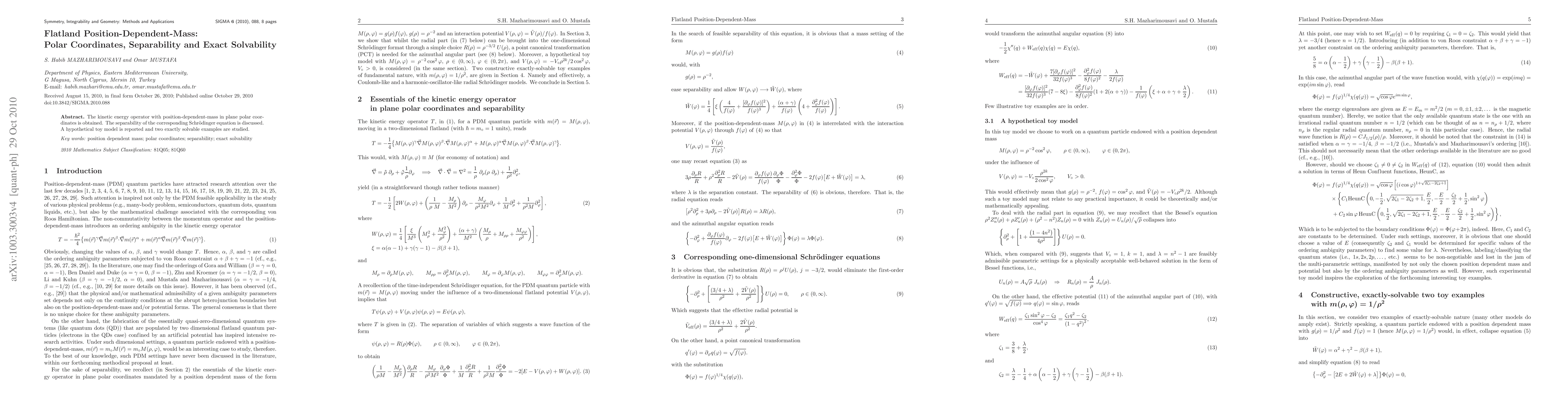 Summary: This paper derives the kinetic energy operator for a position-dependent mass in plane polar coordinates and explores the separability of the Schrödinger equation. It presents a hypothetical toy model and analyzes two exactly solvable examples.